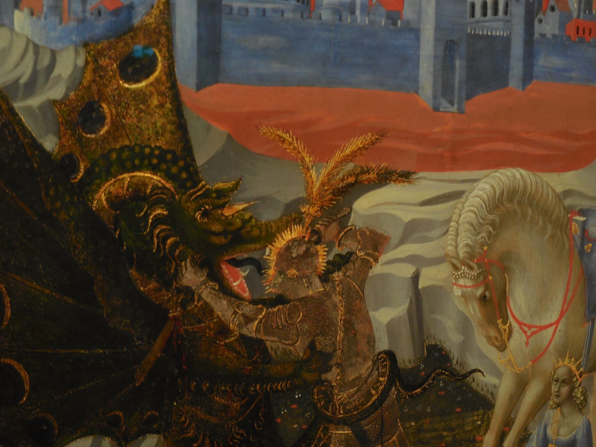 - “Saint George and the Dragon” detail, 1423-25, Paolo Uccello, Melbourne, National Gallery of Victoria