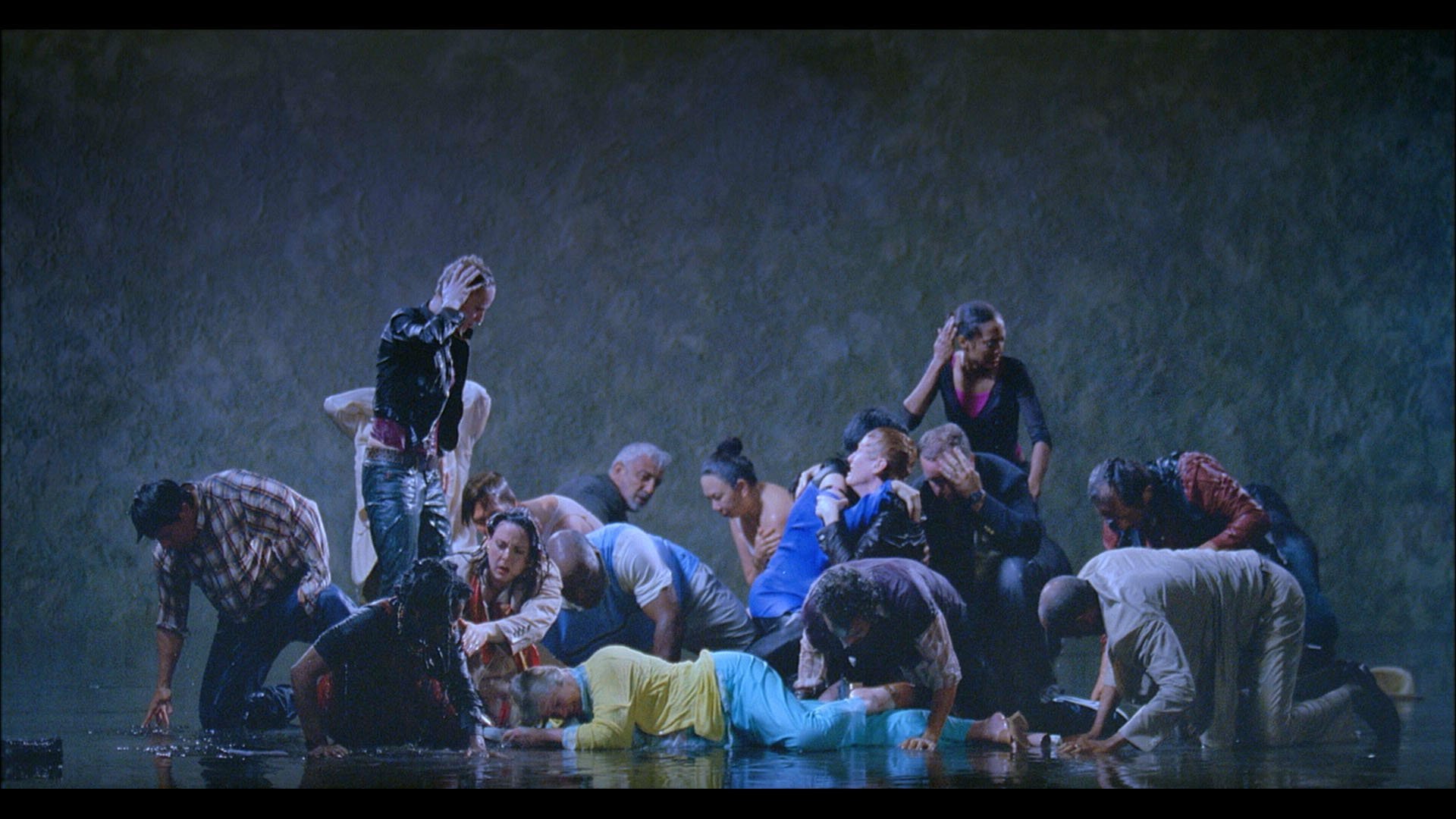 Now, in Mantova, we will see his work titled “The Raft”, among the frescoes by Giulio Romano. “The Raft” is a video that lasts about 10 minutes, with a still shot and a slow motion, that shows the fall and the resistance of a group of 19 people in modern clothes while being hit by a violent jet of water. Some critics have noticed some similarities between the characters of this piece and the ones painted by Giulio Romano in the Palazzo Te: the Giants felled by the collapse of mountains and invested by swollen rivers. However, we can say that this relationship is very weak because it is based on an analogy that is only about the fiction, and there is indeed no relations between the two conceptual meanings.