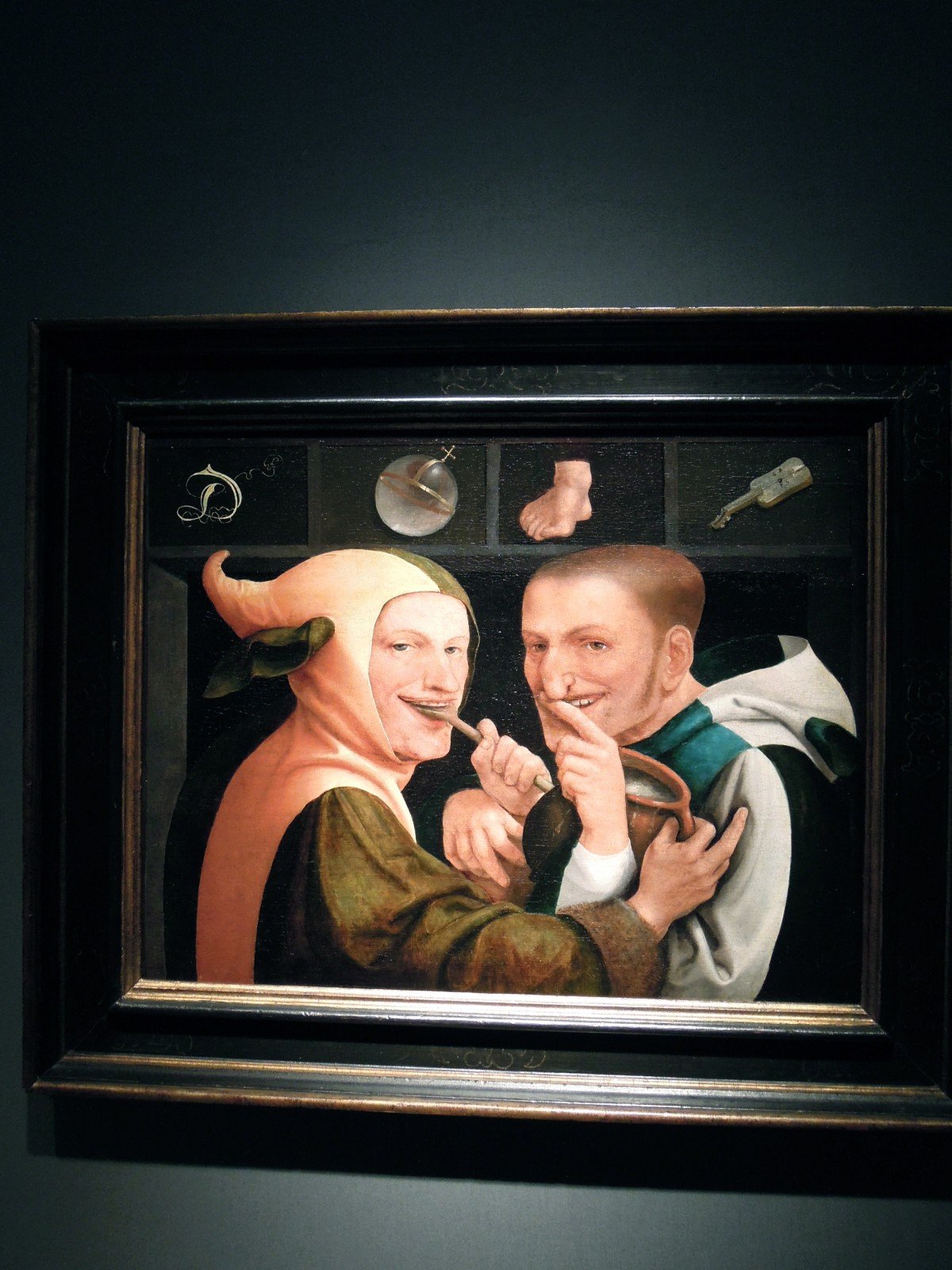 Another example is this small oil painting by Jan Massys (Anvers, 1509 – c.1573). Christian Dior, who died in Montecatini, Italy, apparently of a heart attack after choking on a fish bone, collected it in his château de la Colle Noire. An invisible thread seems to link the mysterious death of the great French fashion designer and this puzzling piece. Here symbols and references drive to an unquestionable truth: the world is fed by idiots.