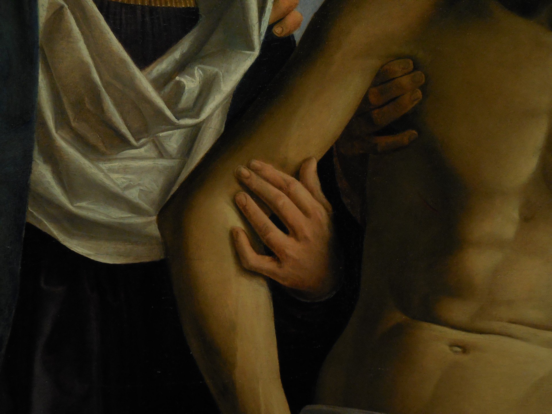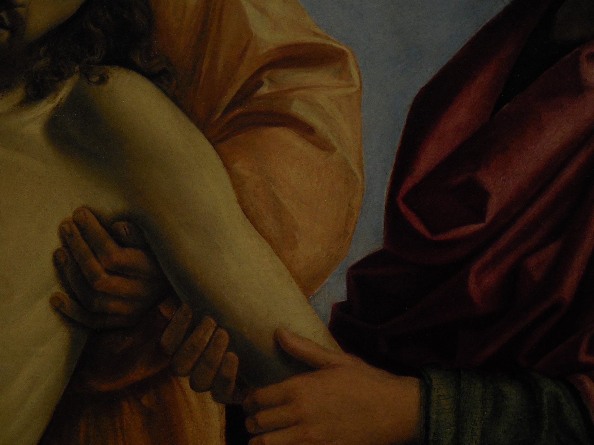 - Cima da Conegliano, “Christ supported by the Virgin Mary, Nicodemus and St. John the Evangelist with Marie”, oil on panel, Gallerie dell’Accademia, Venice. Detail.