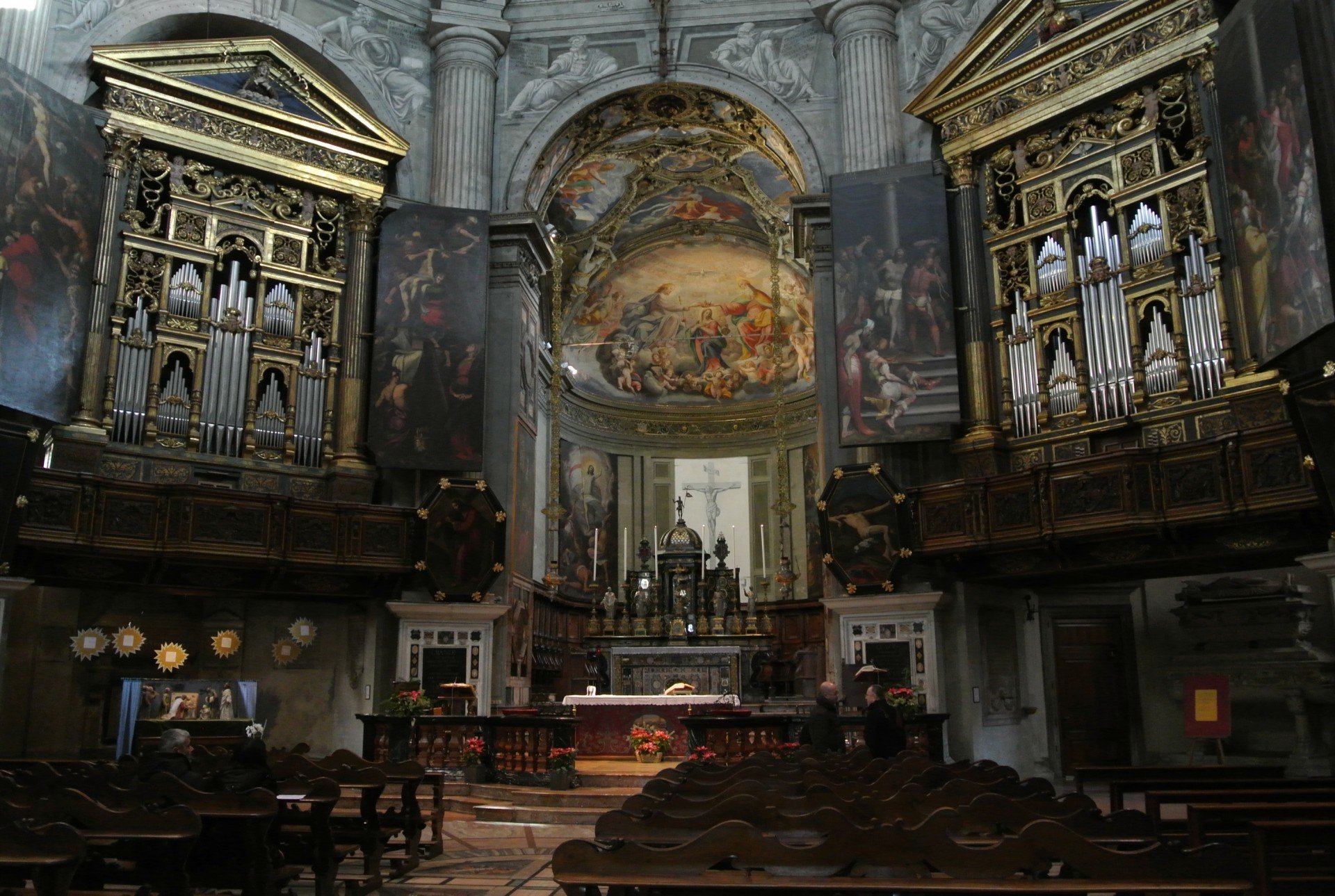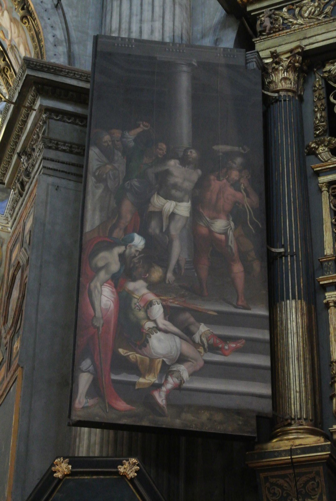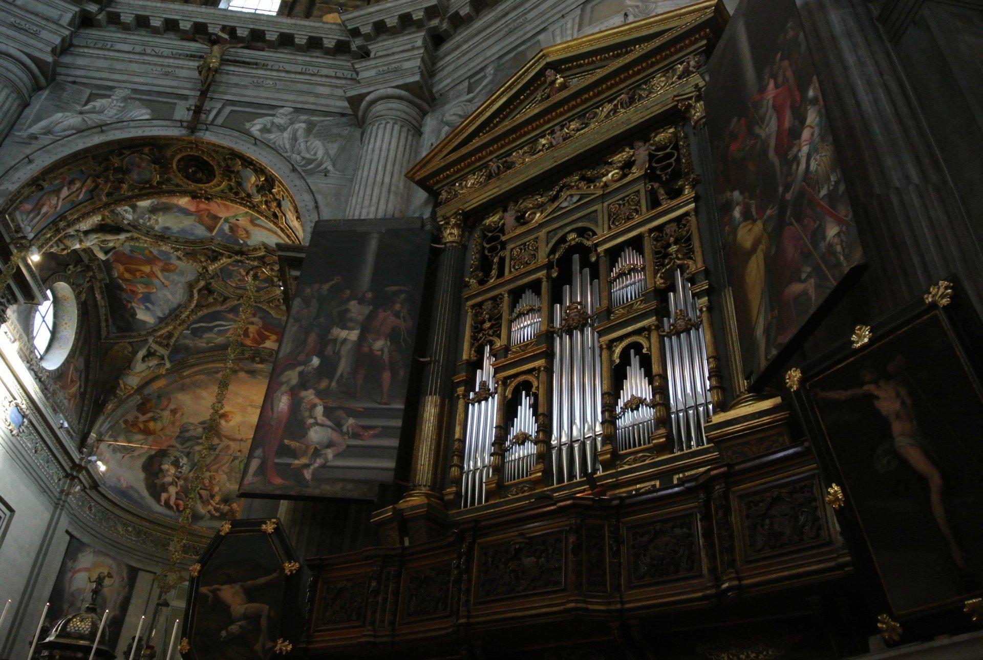 The organ on the right side (in cornu Epistolae) in Santa Maria della Passione church is by Gian Giacomo Antegnati, and is dated 1558. The doors have been painted by Carlo Urbini. On the outside, the Crowning with Thorns, on the inside the Ecce Homo and the Flagellation. To experience the sound – and discover Radio Aporee – just click here, and then the red spot (headphones suggested!).
