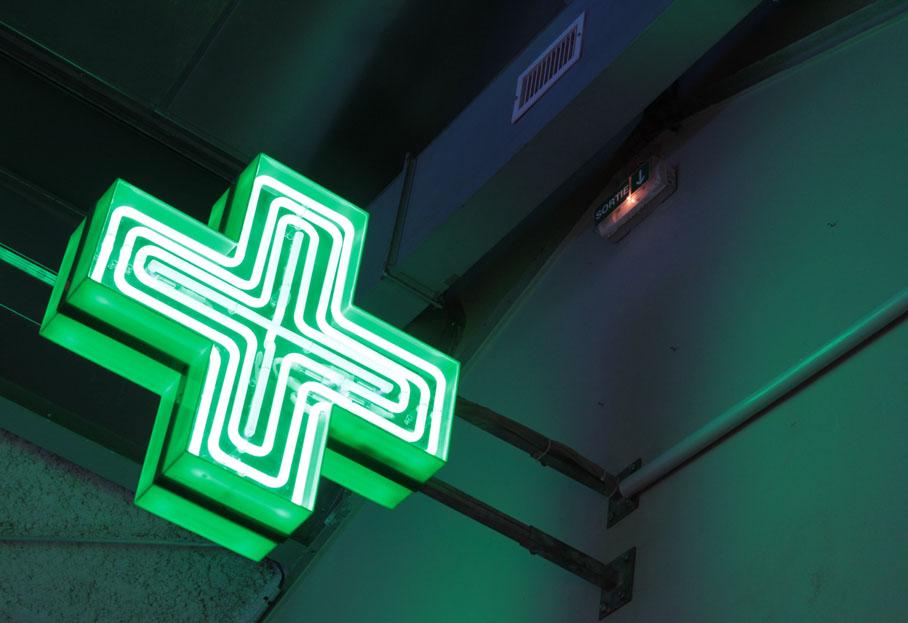 - Jonathan Monk, “All the Possible Ways of Lighting a Chemist Shop’s Sign (One Light at a Time), 2002.