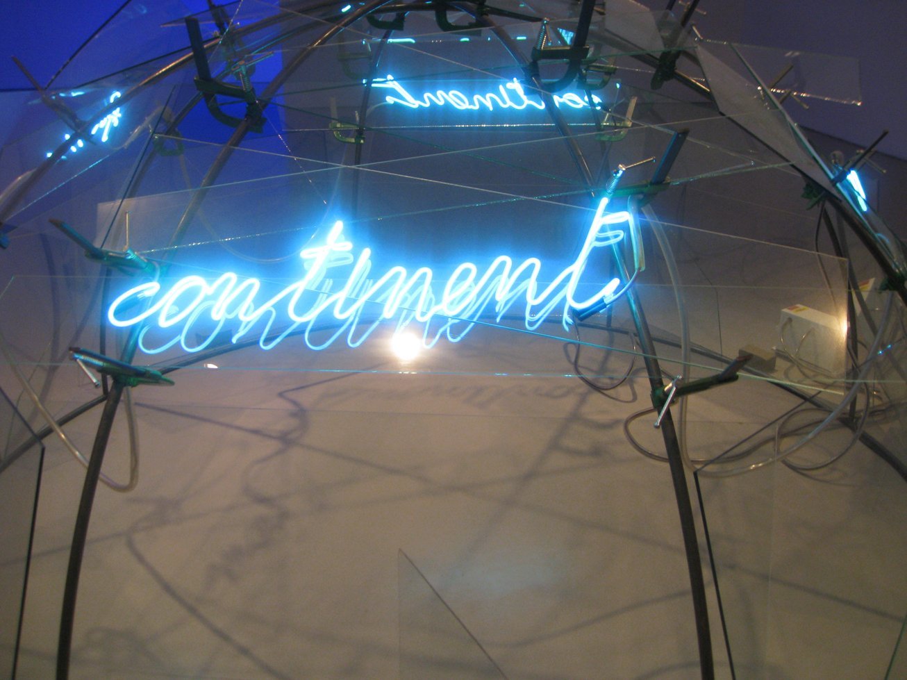 - Mario Merz, “From Continent to Continent,” 1985. Steel, glass, neon, clay, metal cables, electrical wire, transformer.