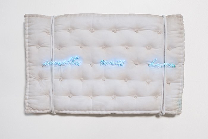 - Pier Paolo Calzolari. Untitled (Materasso: “senz’altri rumori che i miei” ), 1971, Courtesy of the artist and Paolo Semprucci.