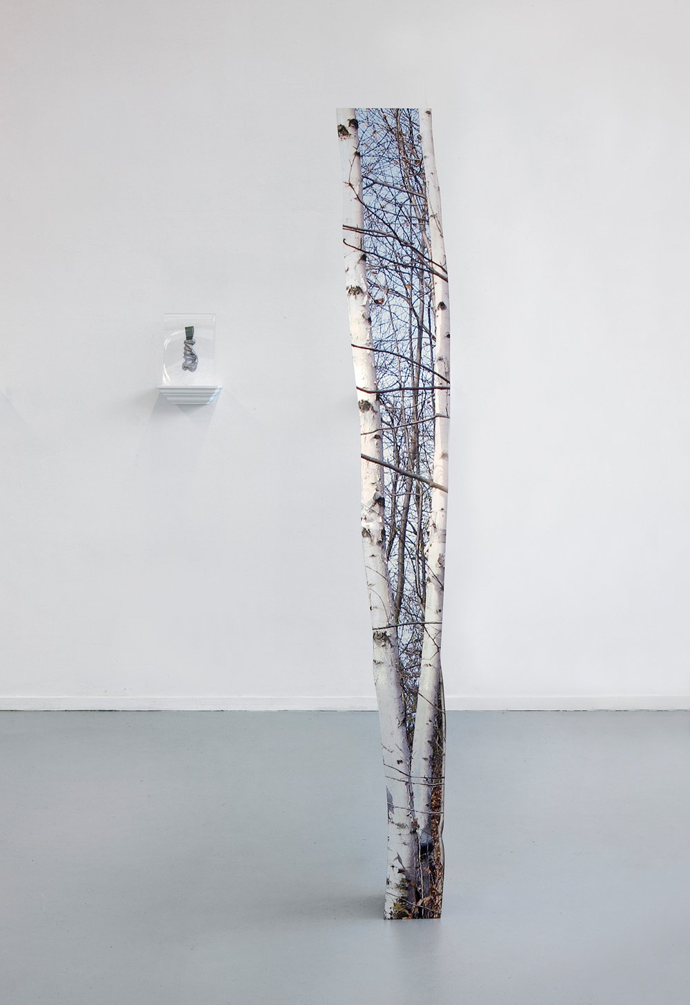 - Katja Novitskova, “Branching VI” found birch tree forest image, digital print on aluminum dibond, cutout display, 2013. Courtesy of Kraupa-Tuskany Ziedler.