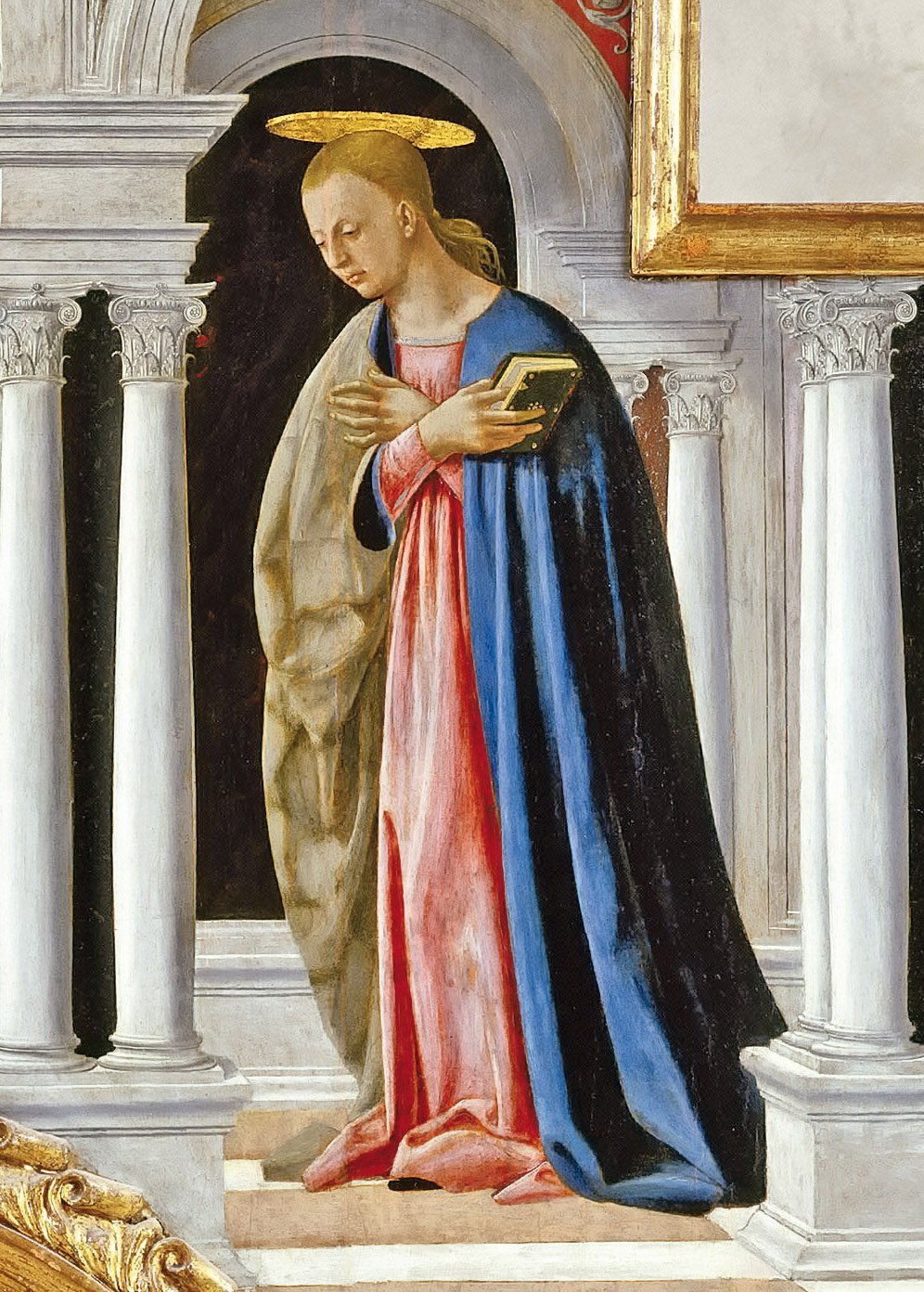 - Piero della Francesca, “Annunciation”, detail from “Polittico di Sant’Antonio”, 1460-1470, Galleria nazionale dell’Umbria, Perugia