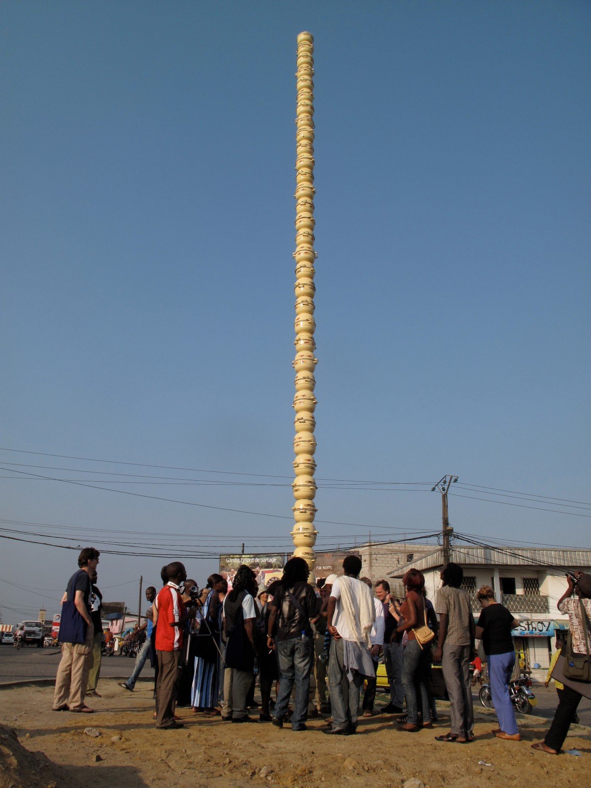 - Pascale Marthine Tayou, Colonne Pascale, 2010 22 metal pots coated with enamel 532 x 60 x 60 cm (metal base 60 cm x 60 cm x 15 mm, metal staff 532 cm) Unique work Exhibition view: Transgressions, Galleria Continua | San Gimignano, 2010 Photo: Ela Bialkowska © Bildrecht, Vienna, 2014