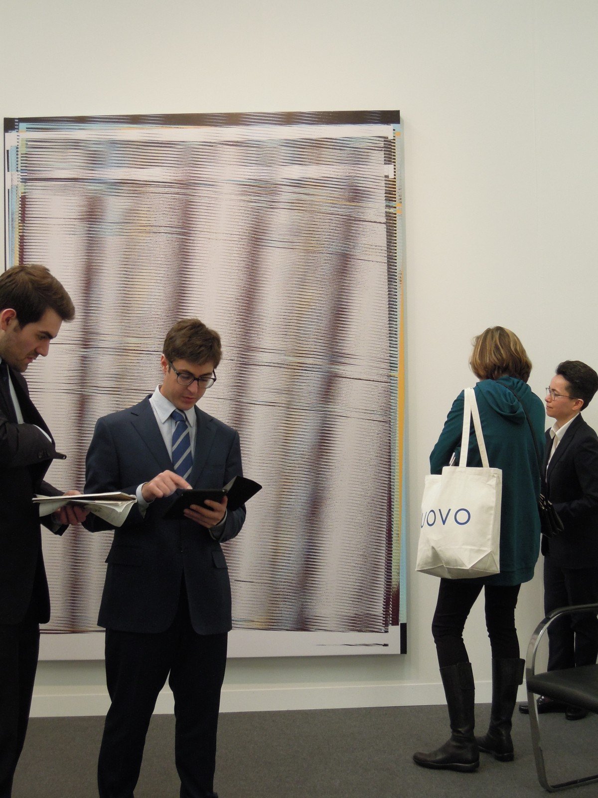 Hanging on the other side of the same wall at Eva Pressenhuber booth is a single piece by Wyatt Kahn. The artist is going to have a solo show at the gallery late in 2014, of which this work is a sort of premonition. It seems that Kahn is focusing his attention on the perimeter of the artwork, saying something like: could you imagine it in a monumental scale?