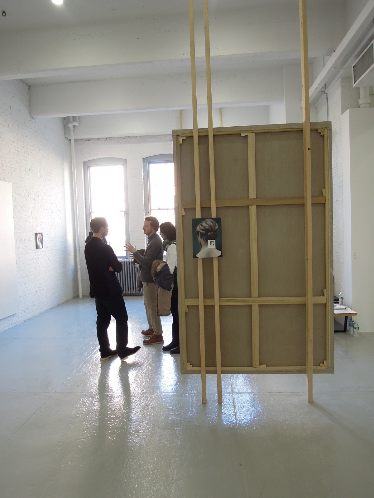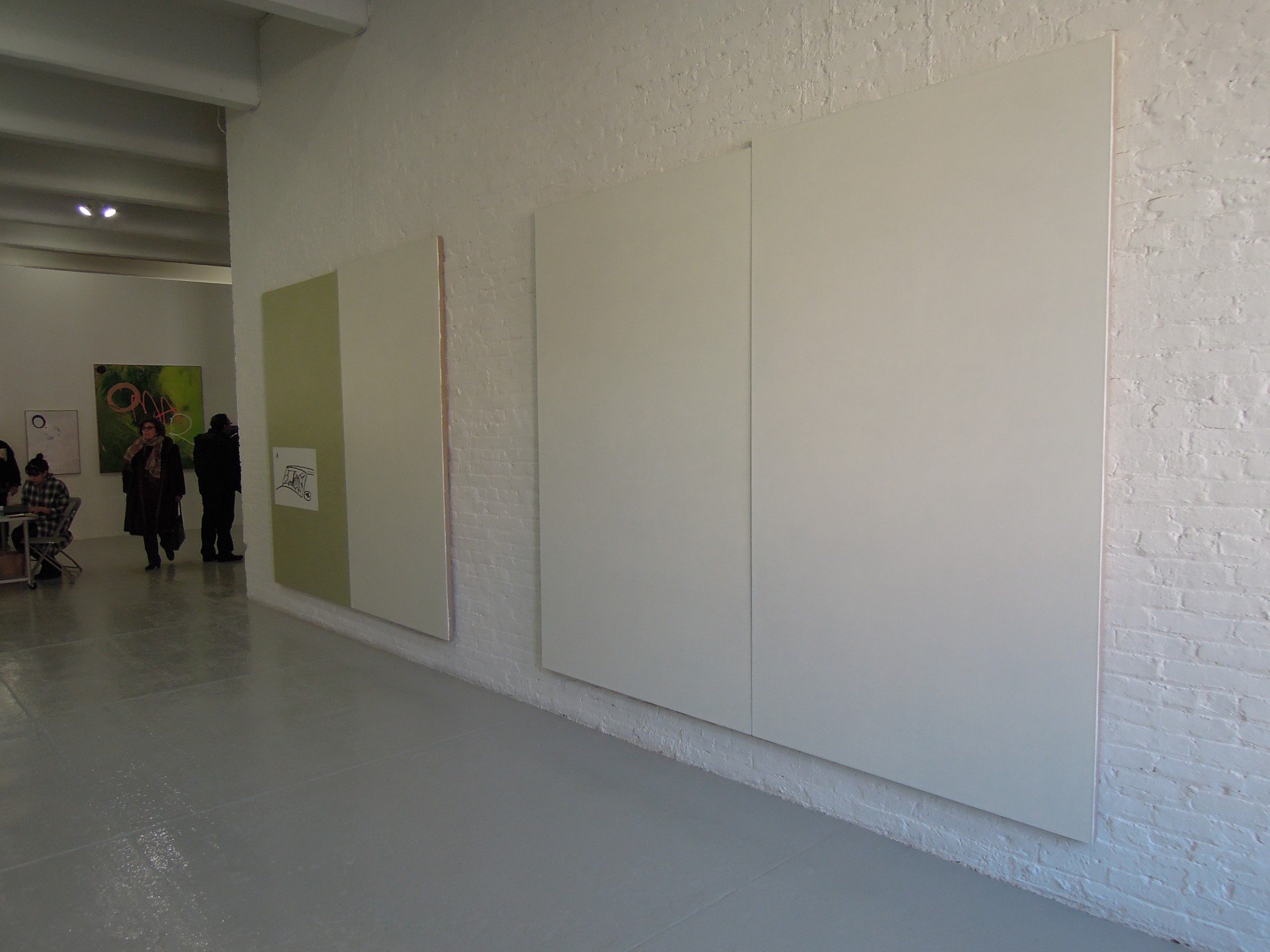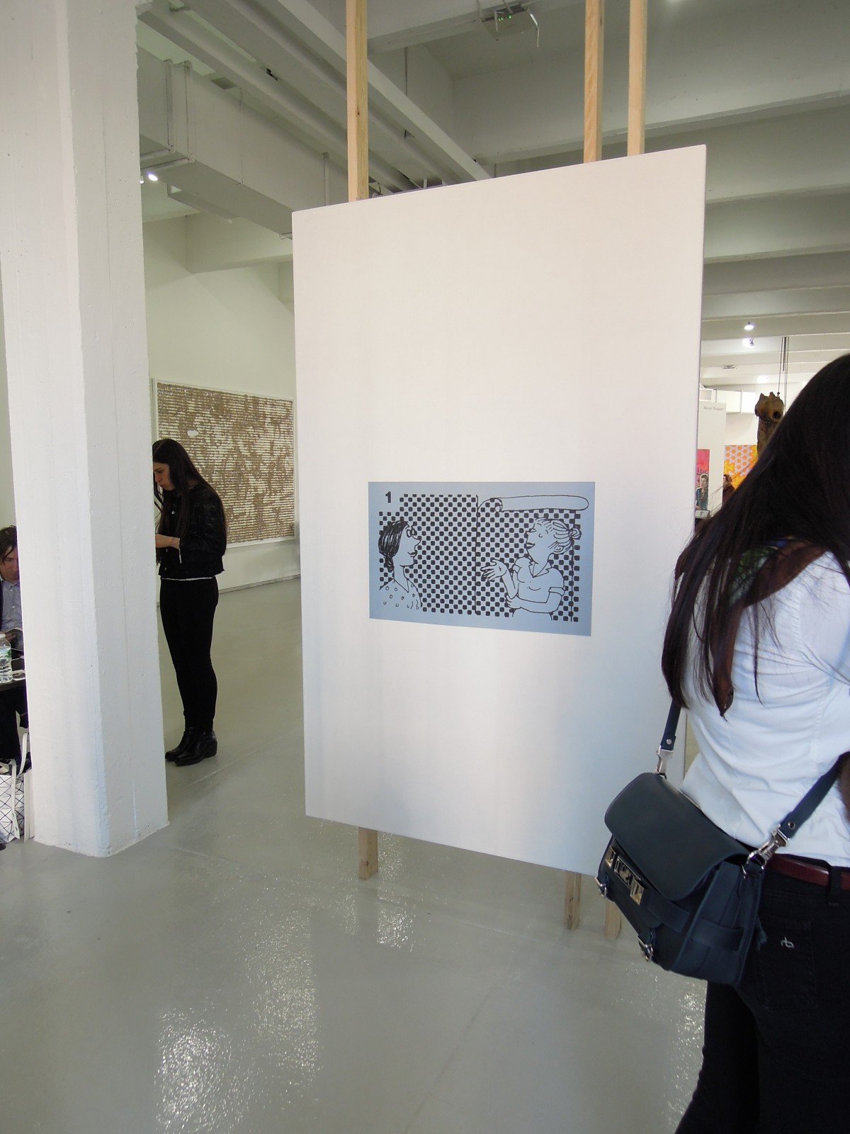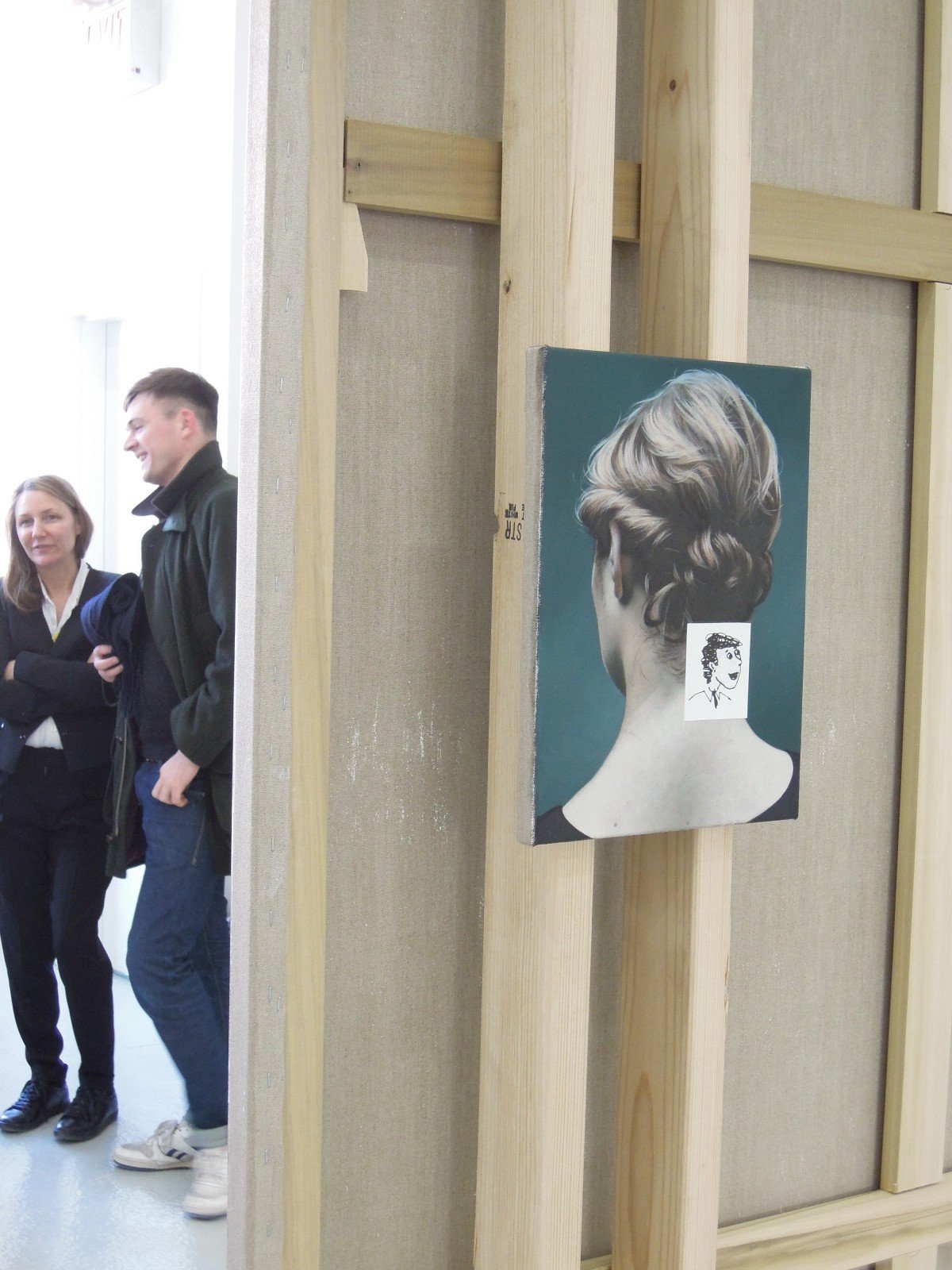 Oliver Osborne’s solo booth at Independent in Chelsea is a must visit. It proves that the artist is using painting to put on stage the space outside the painting. His colour-fields are a sort of walls, or doors – be careful, not mirrors – behind which there is the parallel dimension of what is abstract. The opposite side is where the realistic painting lies, hence the two women’s heads who effectively are looking at the abstract “side”, or “outside” (the model is the artist’s girlfriend). As you may notice from our images, the interaction between the real and the painted is indeed impressive.