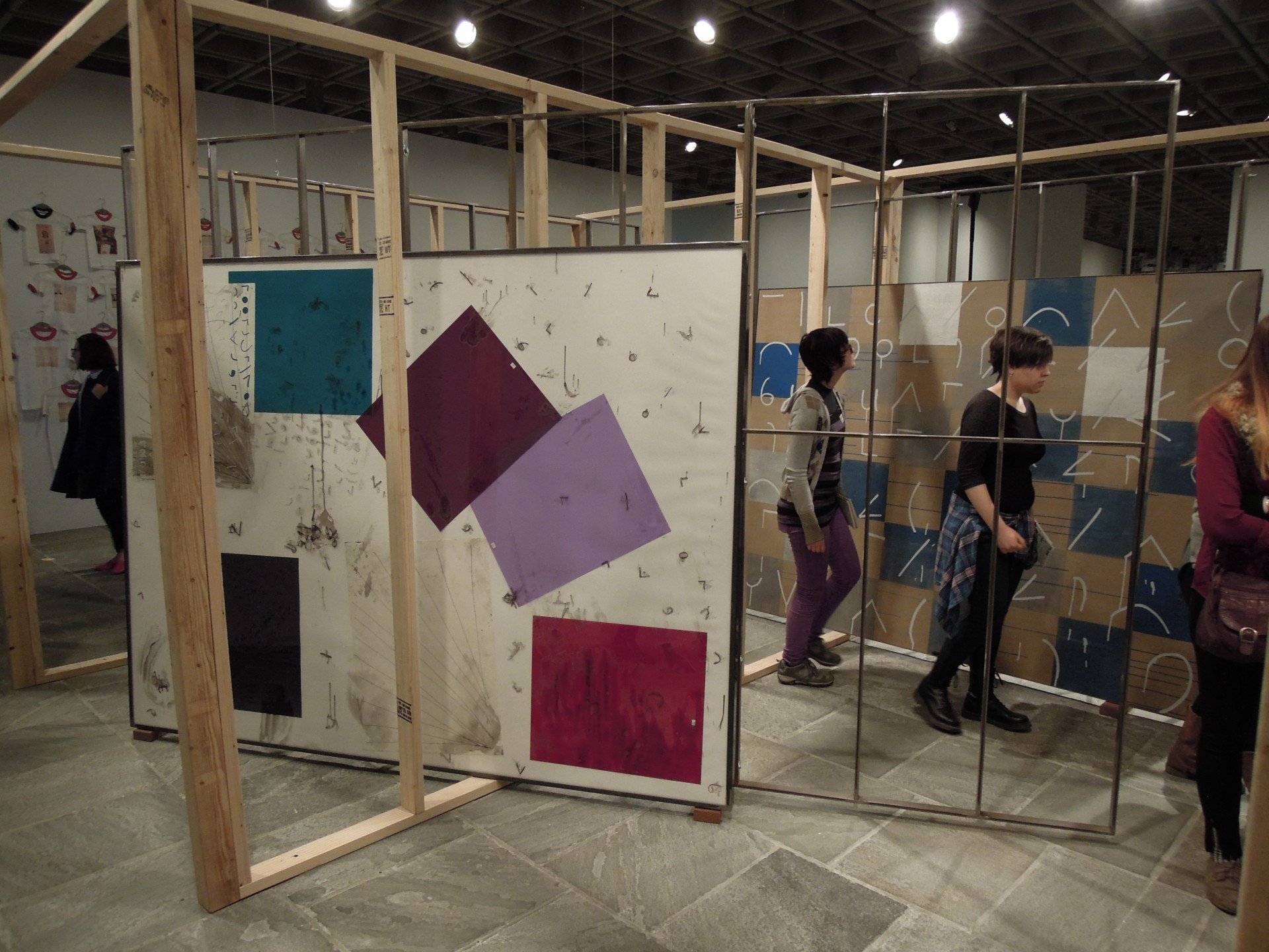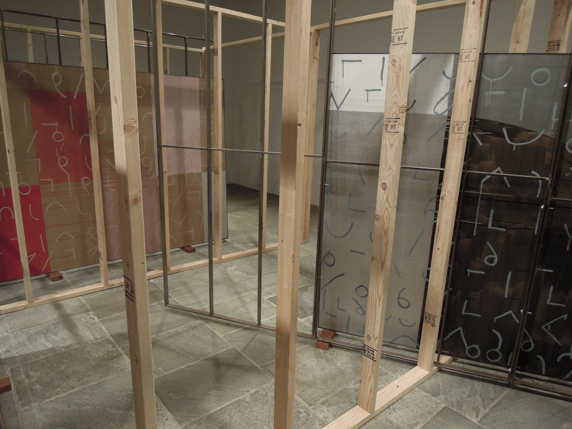 They are framed by what is not properly an artwork, but a kind of replacement, or a displacement for that matter, as it was the extraordinary performance by Ernst Reijseger filmed by Werner Herzog during the last edition. This year, the ideas brought to the attention of the public by Semiotext(e), invited as a collective to take part to the Biennial, are the evidence of how art is in needs, nowadays more than ever, of valid theories and information. Listening to Sylvère Lotringer interviewing Paul Virilio has given us many good keys to read, for example, the installations by Bjarne Melgaard and Travis Jeppesen, Channa Horwitz’s visual novel or the two small Danh Vo’s. On this floor it is also to be found the ambitious installation by Dashiell Manley, perhaps too slow and complex for this sort of circumstances.