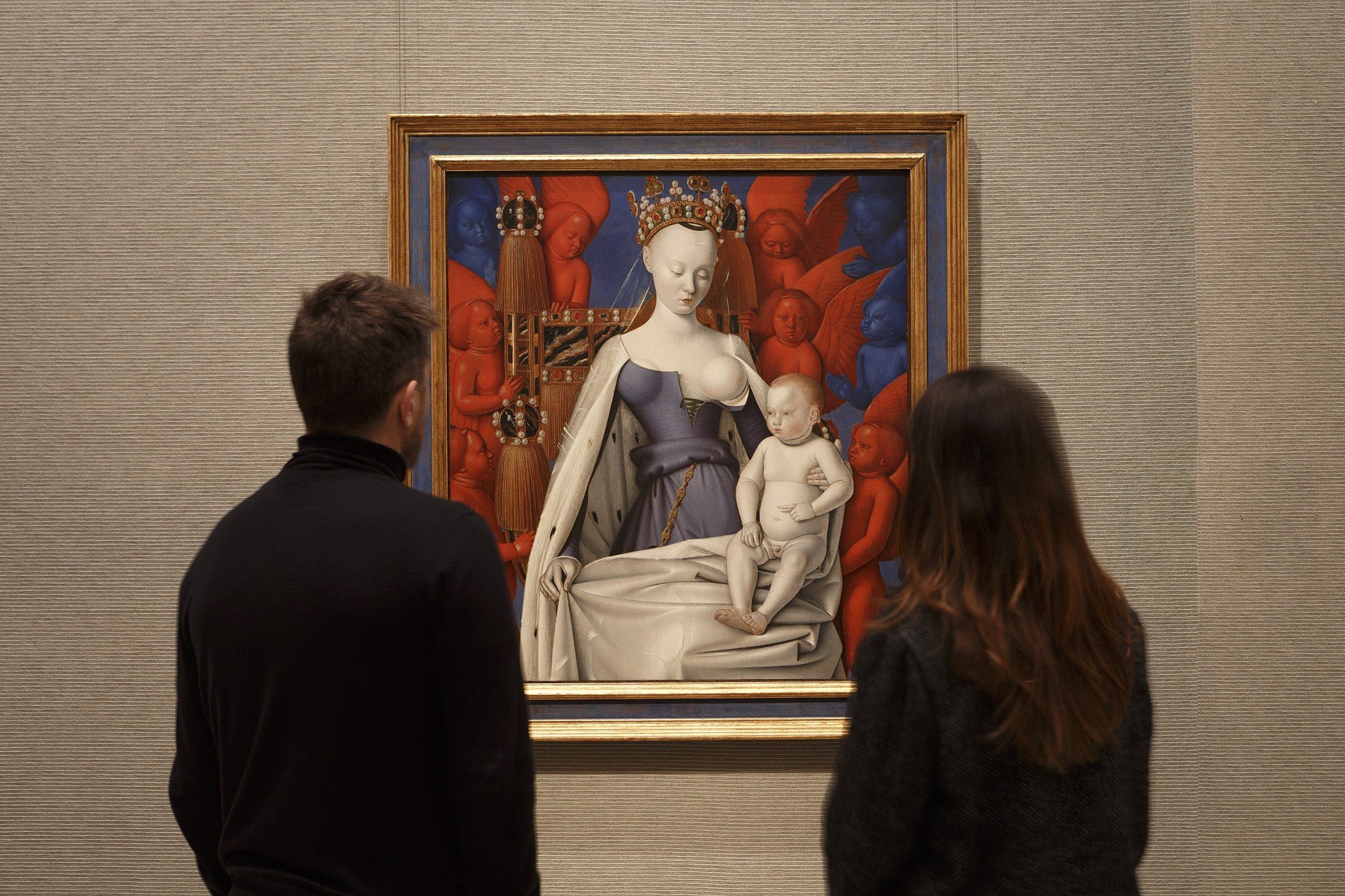 - Jean Fouquet, Virgin and Child with Angels, 1452-1455 ca. Oil on panel by Jean Fouquet, Antwerp, Koninklijk Museum voor Schone Kunsten (it will be in Madrid, Prado Museum until 25 May) © Museo Nacional del Prad