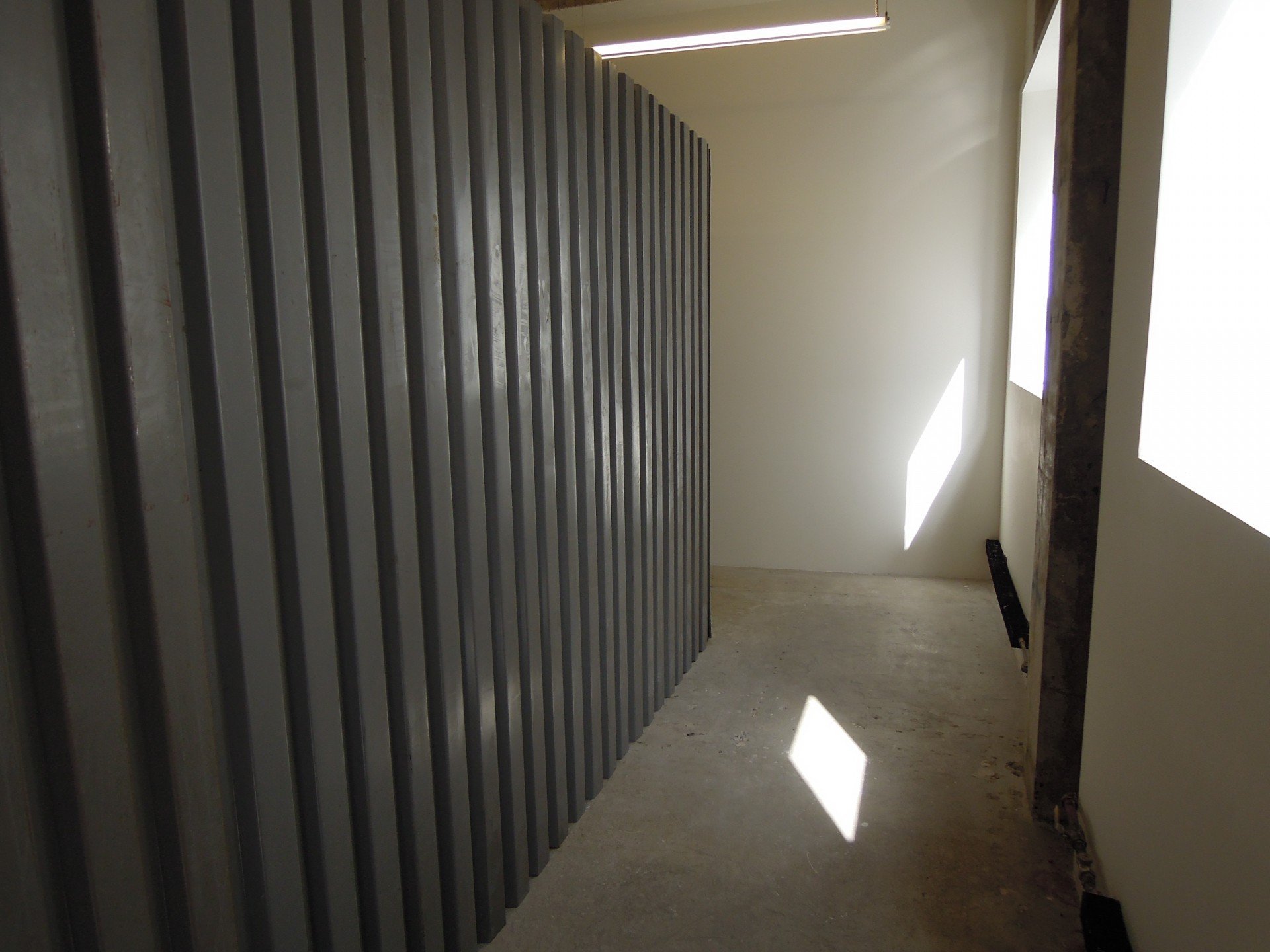 This passage from the book titled “The Descent of the Goddess Ishtar Into the Lower World” is the key Harlan has given to the visitor for reading the long metallic wall by which the gallery’s main space has been enclosed, leaving only a narrow corridor to walk around. A 10 foot roll-down gate is in front of the wall, to underline the idea of something that is closed. Clearly Ishtar – the East Semitic Akkadian, Assyrian and Babylonian goddess of fertility, love, sex and war – refers to the Roman Venus, whom the gallery is dedicated yo. Do we need anything else to ponder over how beauty is related to the idea of inaccessibility? And, could the essence of beauty lie in the way human beings protect it as the artist seem indeed to suggest it?