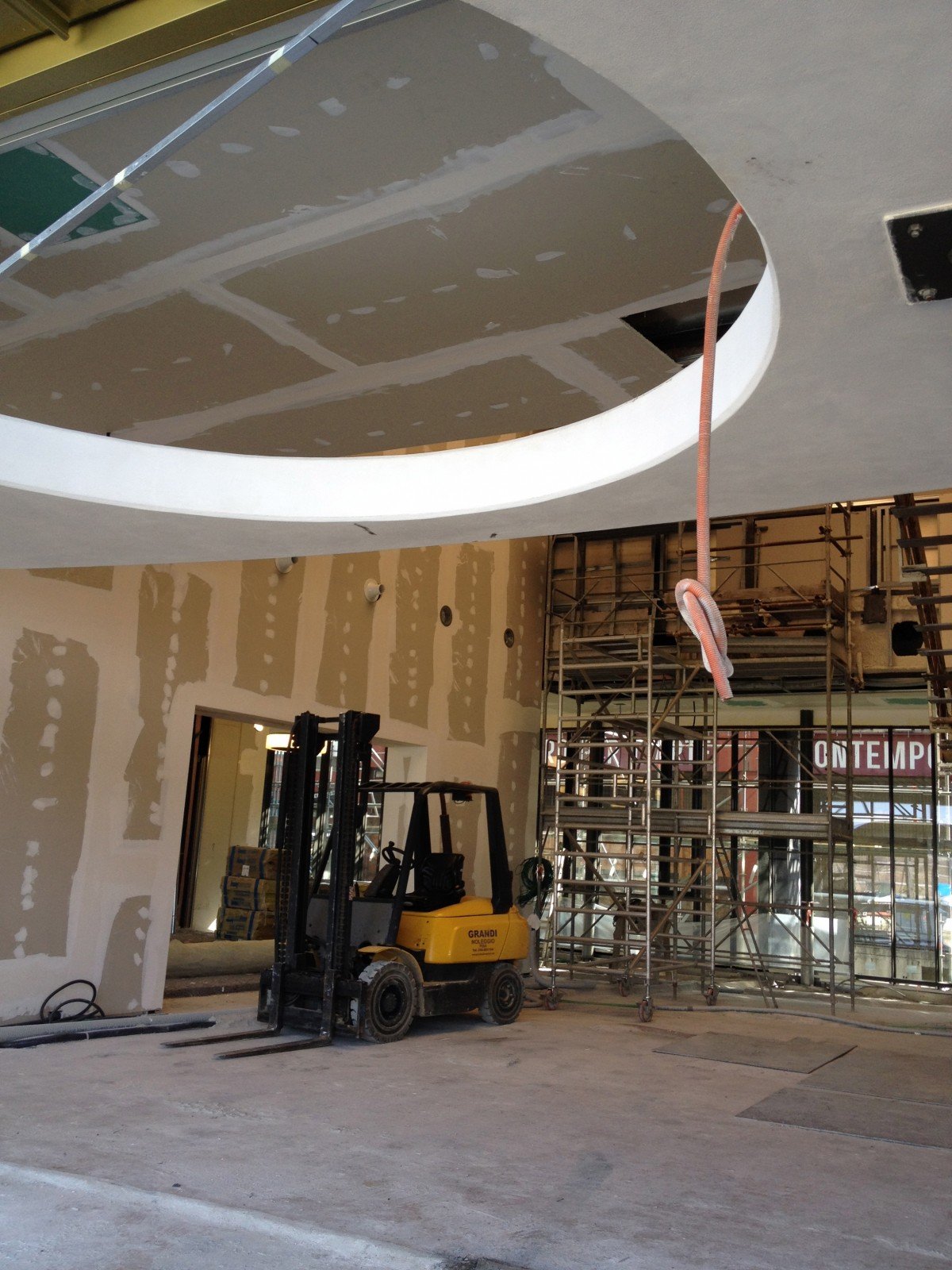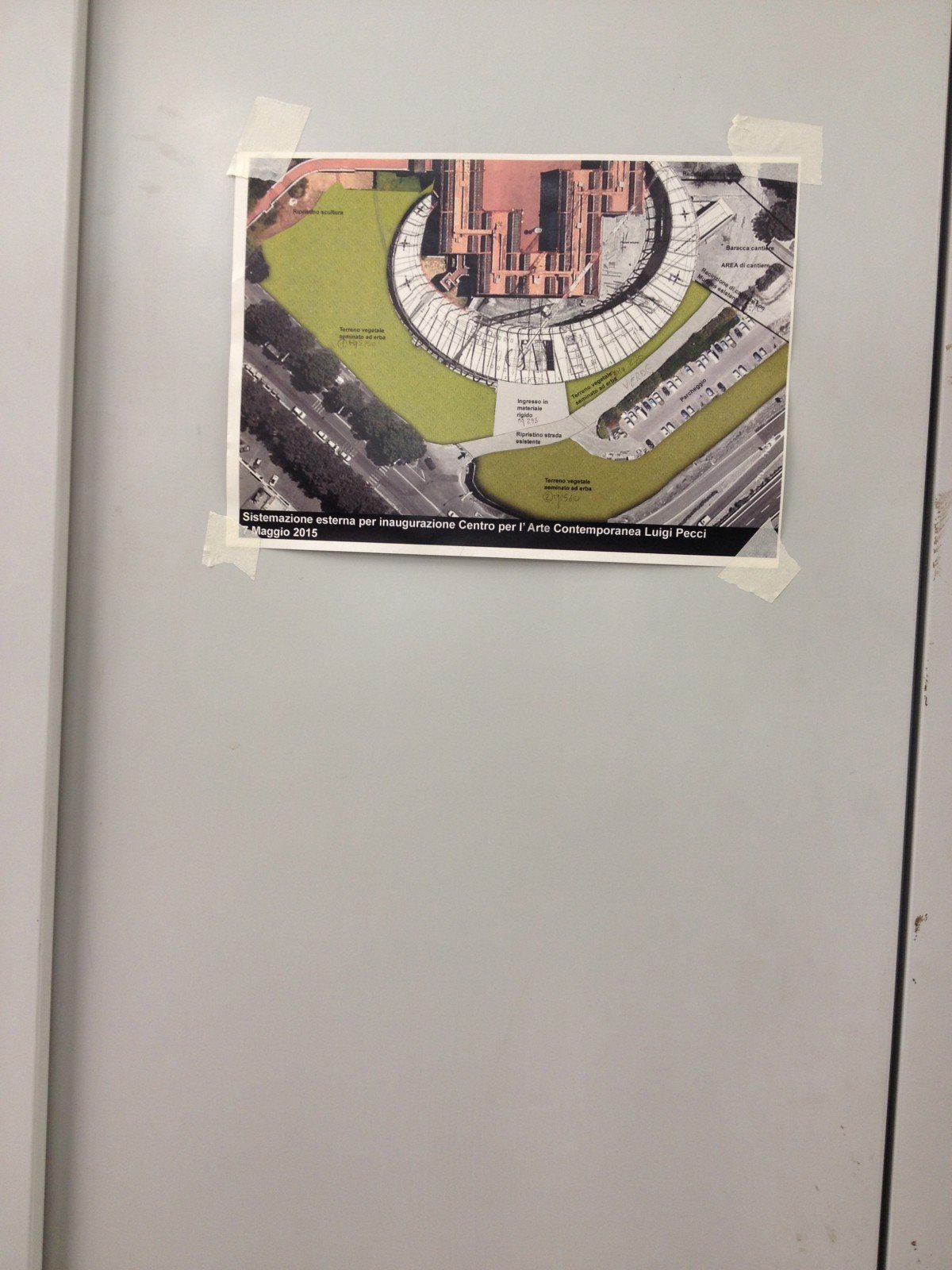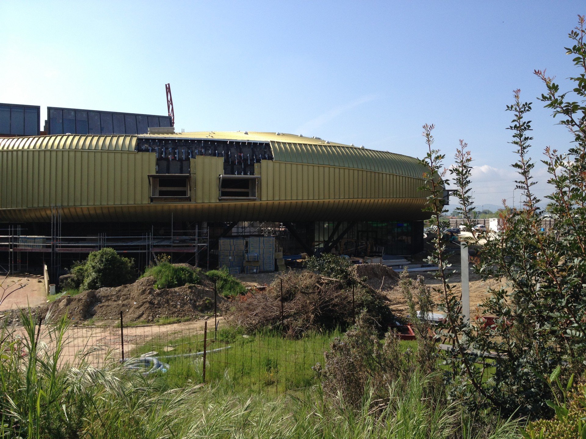 Prato’s major, Roberto Cenni, promises that the new addition to the “Centro per l’arte contemporanea Luigi Pecci” will open to the public next May. He also assures that it will soon become a dynamic force in the service of modern and contemporary art. We do hope so. In the meantime, when visiting the new building designed by Nio architects around the old structure – and costed 10 millions euros – we had a very good feeling. The new curved metallic shell is iconic, but it perfectly fits with the surroundings, while hiding the original decadent industrial building (from 1988). It will benefit from its location, that is in front of a huge roundabout perfectly visible to the people coming to Prato from the highway A11. Hence, from this point of view, the Pecci could turn out to be even more iconic for Prato than its recently refurbished Museo di Palazzo Pretorio, located in the city centre and thus not accessible by car.