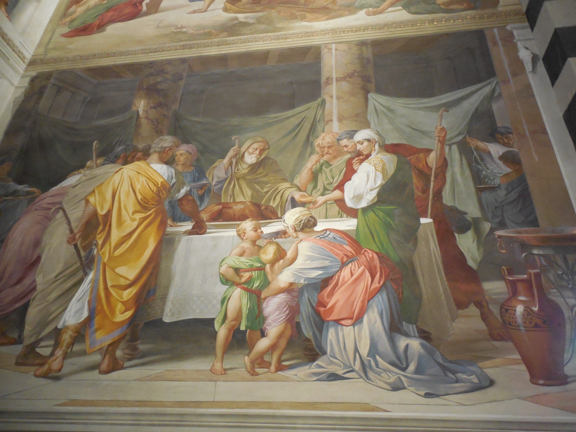 The first thing that strikes you when looking at his work in the Chapel Vinaccesi, is the particular attention that the artist dedicated to hairstyles and headgears. It is indeed a singular coincidence to discover from his biography that both father and mother of Alessandro Franchi were hatters. This frescoes seem to be in perfect harmony with its Renaissance neighbors, Filippo Lippi an Paolo Uccello. There’s indeed a strong consistency with the fifteenth-century forms, given by both the choice of design solutions and the implantation of the composition by Franchi.