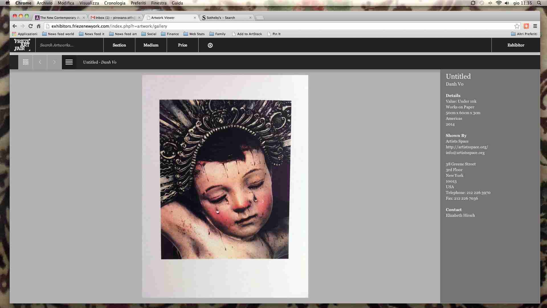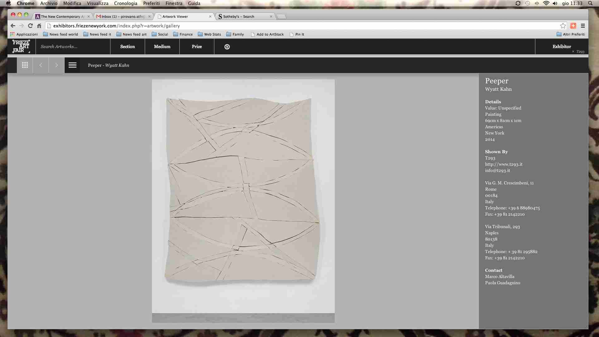 There is however a problem with this new trend of publishing the works on sale on a certain platform – other fairs have chosen artsy.net for that matter – that is the lack of information. The only chance for the user to find out more about the piece is to write to the gallery; but it takes time, both for the user himself and for the gallery.