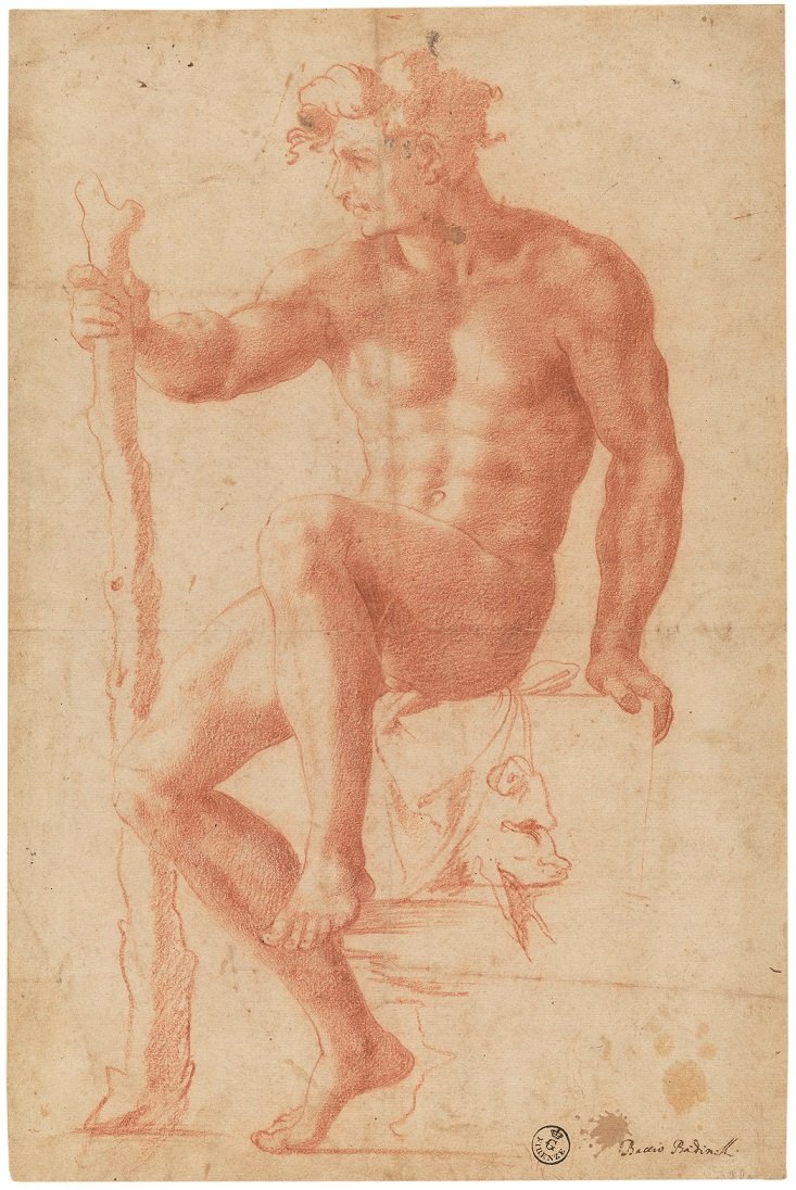 - Baccio Bandinelli “Hercules sitting on the skin of the Nemean lion”. From 1520 to 1524 . Red pencil. Florence, Uffizi Prints and Drawings