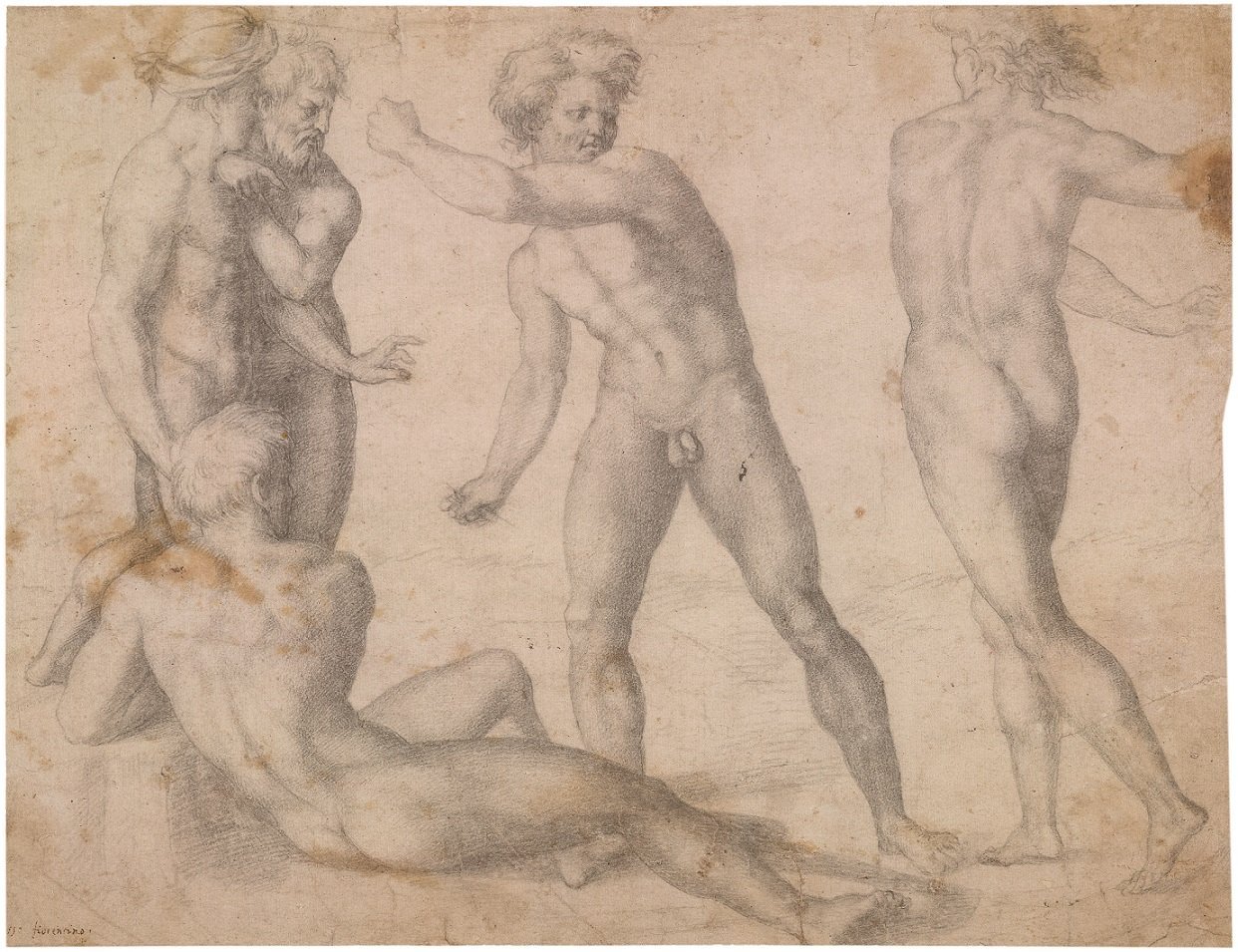 - Baccio Bandinelli, “Study of nudes”, c. 1512. Black pencil. London, British Museum