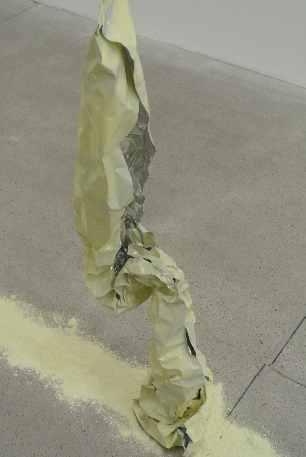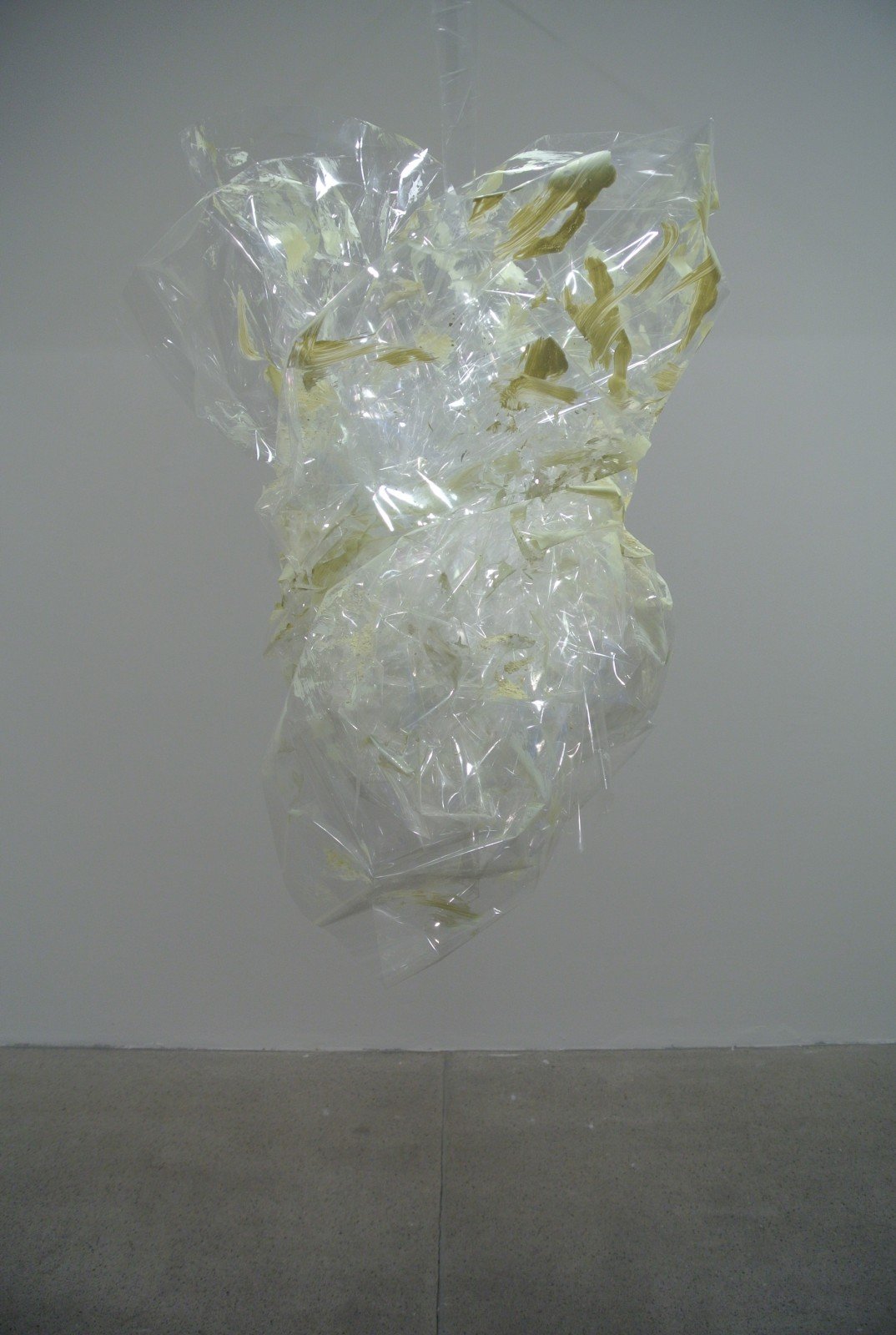- Karla Black, Never Produce, 2014. Hanging work polythene. Polythene, powder, paint, plaster. 70x72x42cm