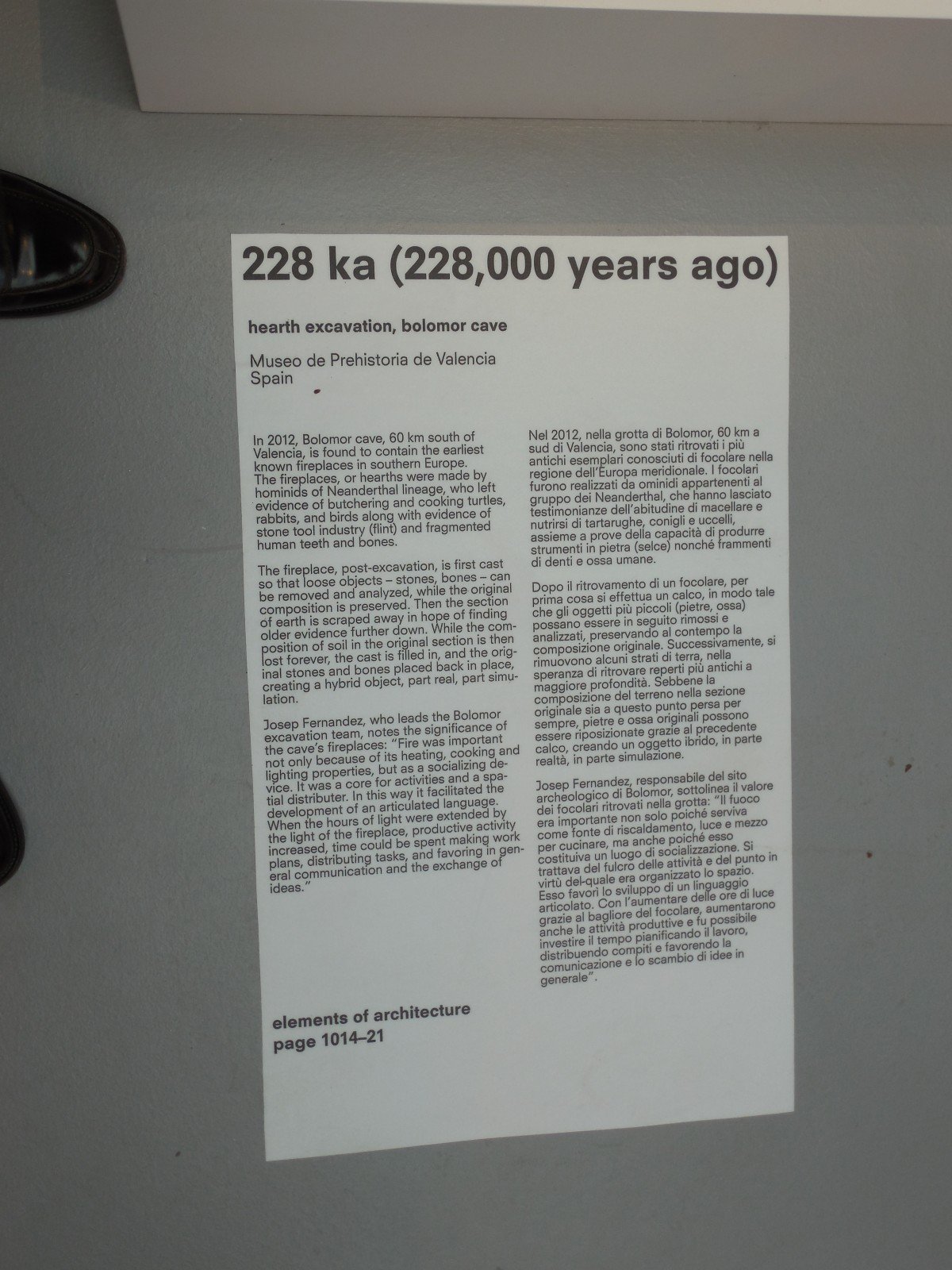 - “Fundamentals” XIV biennale di architettura, Venezia, “Elements of architecture”, Central Pavilion. Fireplace room