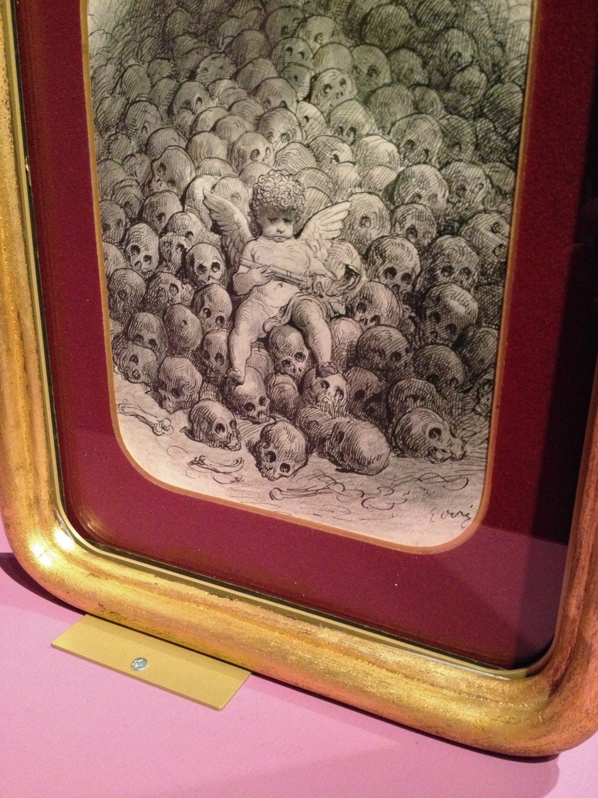- Gustave Doré, Cupid with a pistol on top of a Mountain of skulls, pen and brush with india ink on paper.