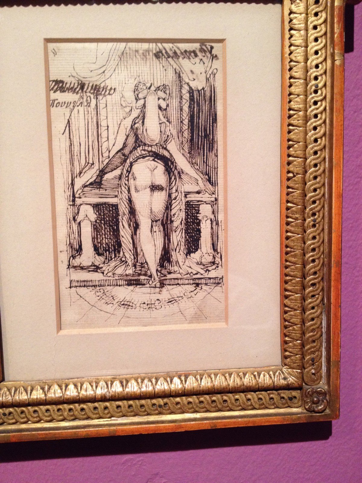- Johann Heinrich Fussli, Callipyga, Lady with raised skirts, standing in front of a dressing table with phallic supports, 1790-1800, pen and india ink on paper.