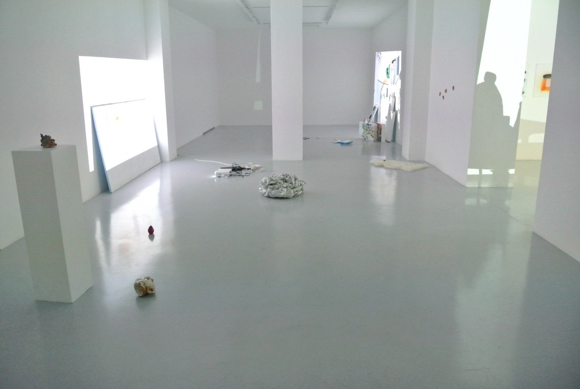 - Trisha Baga, Sand right outside my door, 2014, 3-D video projection on painted foam + installation. On floor: aluminium object, ca. 26x60x60 cm, 2 glazed ceramic objects, ca. 12x20x14 cm, and ca. 6,5x8x8 cm timer.