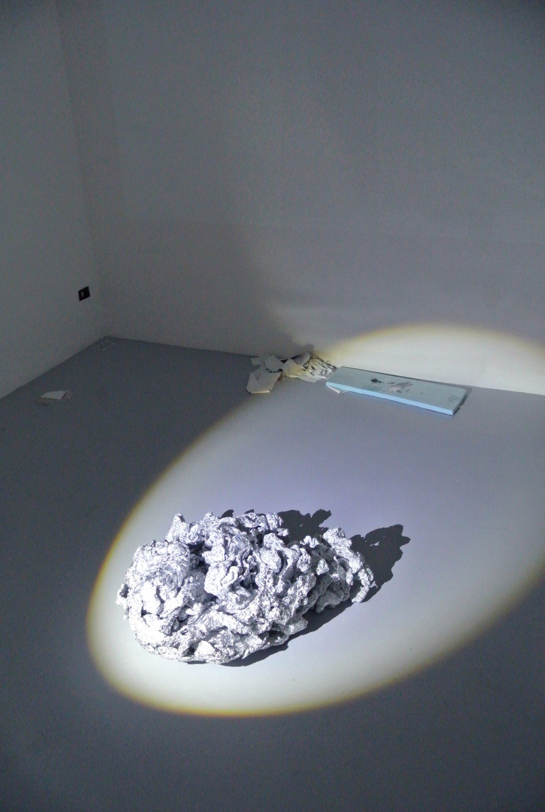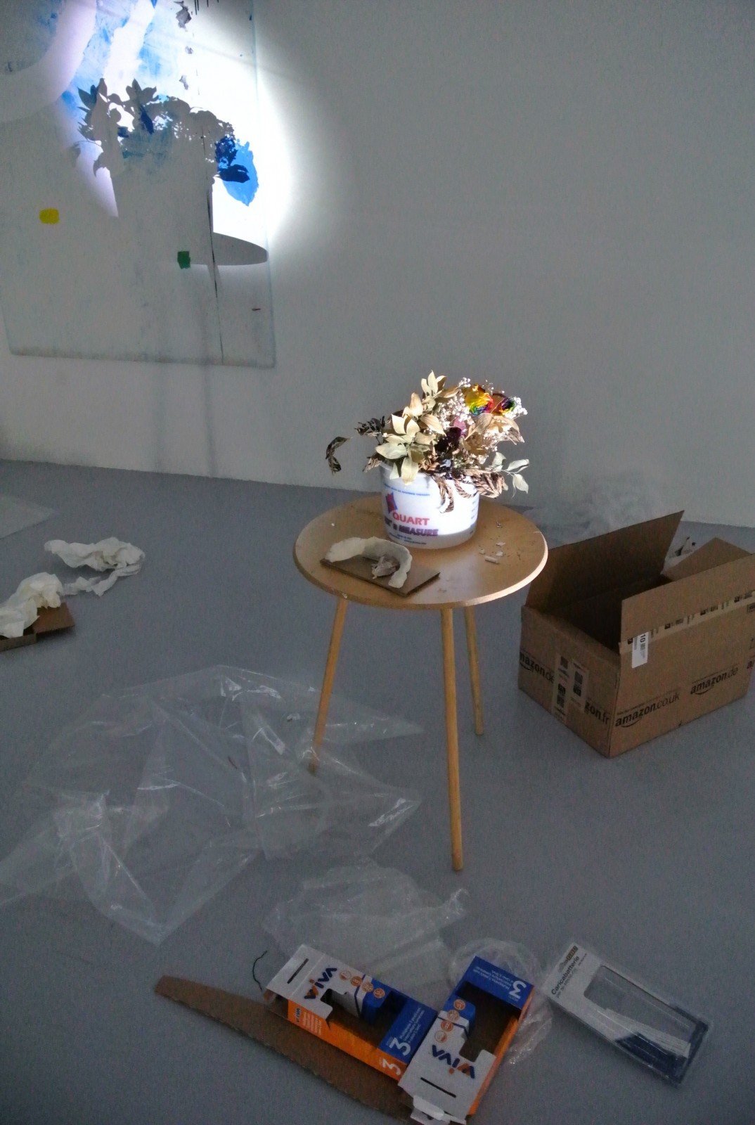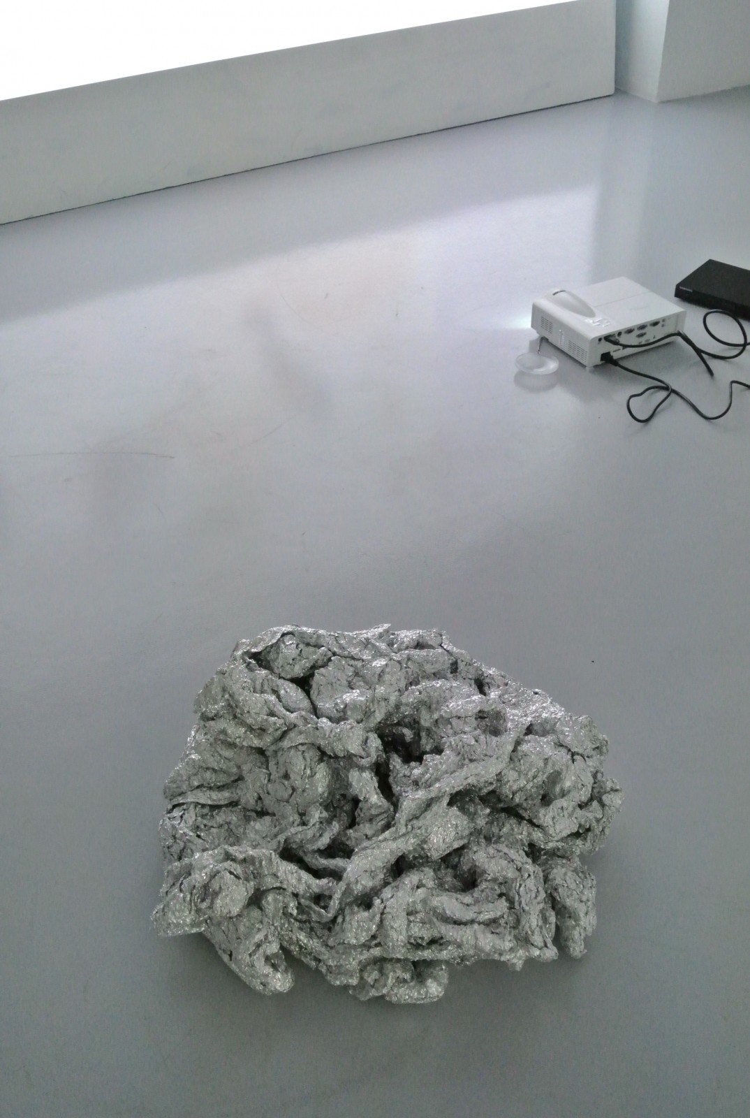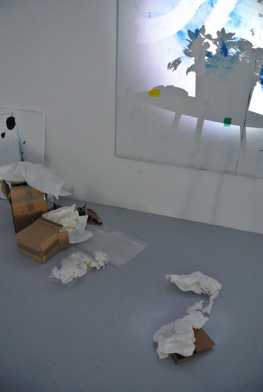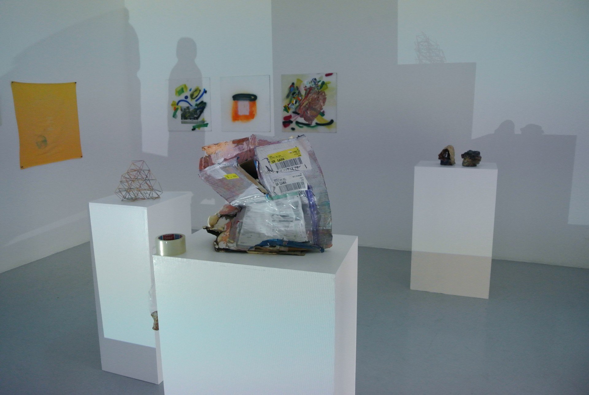- Trisha Baga, Brother Stuff, 2014. Sculpture. 3 cardboard boxes, papier maché object, spotlight, ca. 177 x 84 x 53 cm aluminium object, ca. 26 x 66 x 70 cm. Detail.