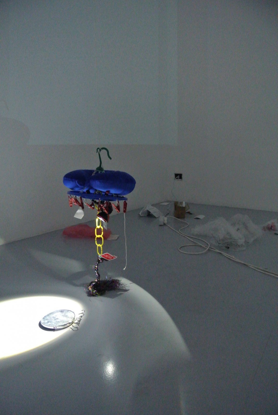 - Trisha Baga, Mouth, 2014, 2 x 3-D video projections + installation with various objects, 1: 24:43 min., 2: loop Dimensions variable. Detail.