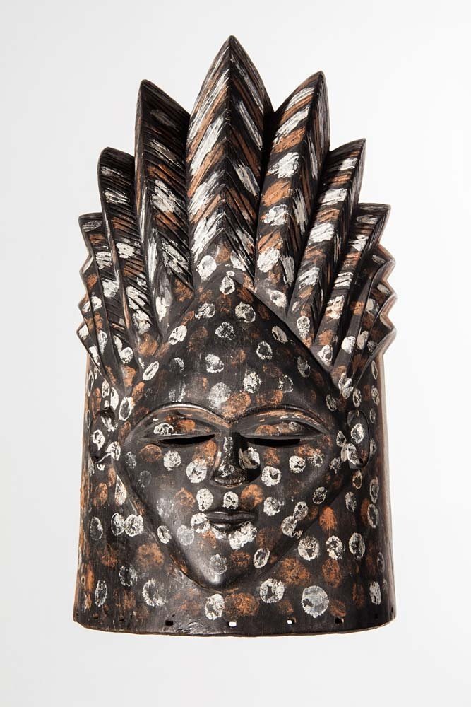 - Helmet Mask of the Sande Society, Bassa, Liberia. Wood, pigment (dark brown, white [kaolin], pink), 37x20x22.5cm. Courtesy Peres Projects, Berlin.