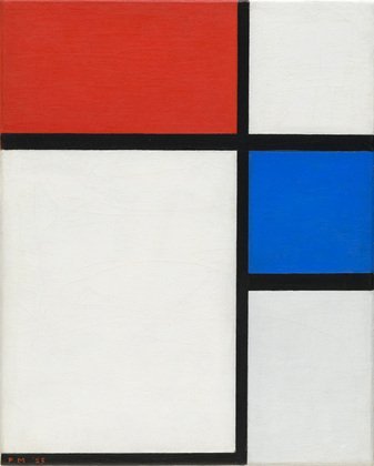 - Piet Mondrian, Composition No. II, with Red and Blue, 1929, oil on canvas, 40.3 x 32.1 cm. Courtesy of MoMA.