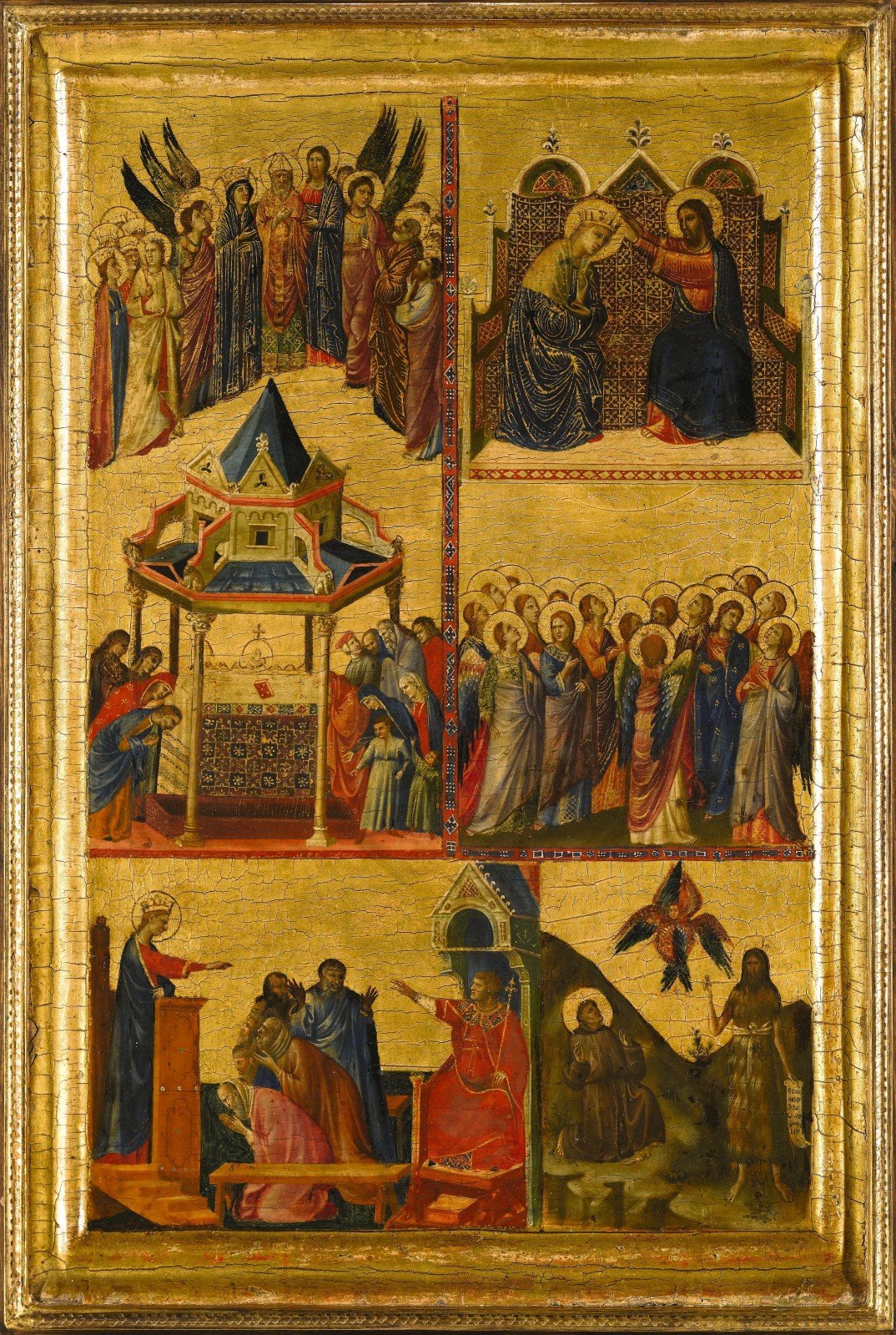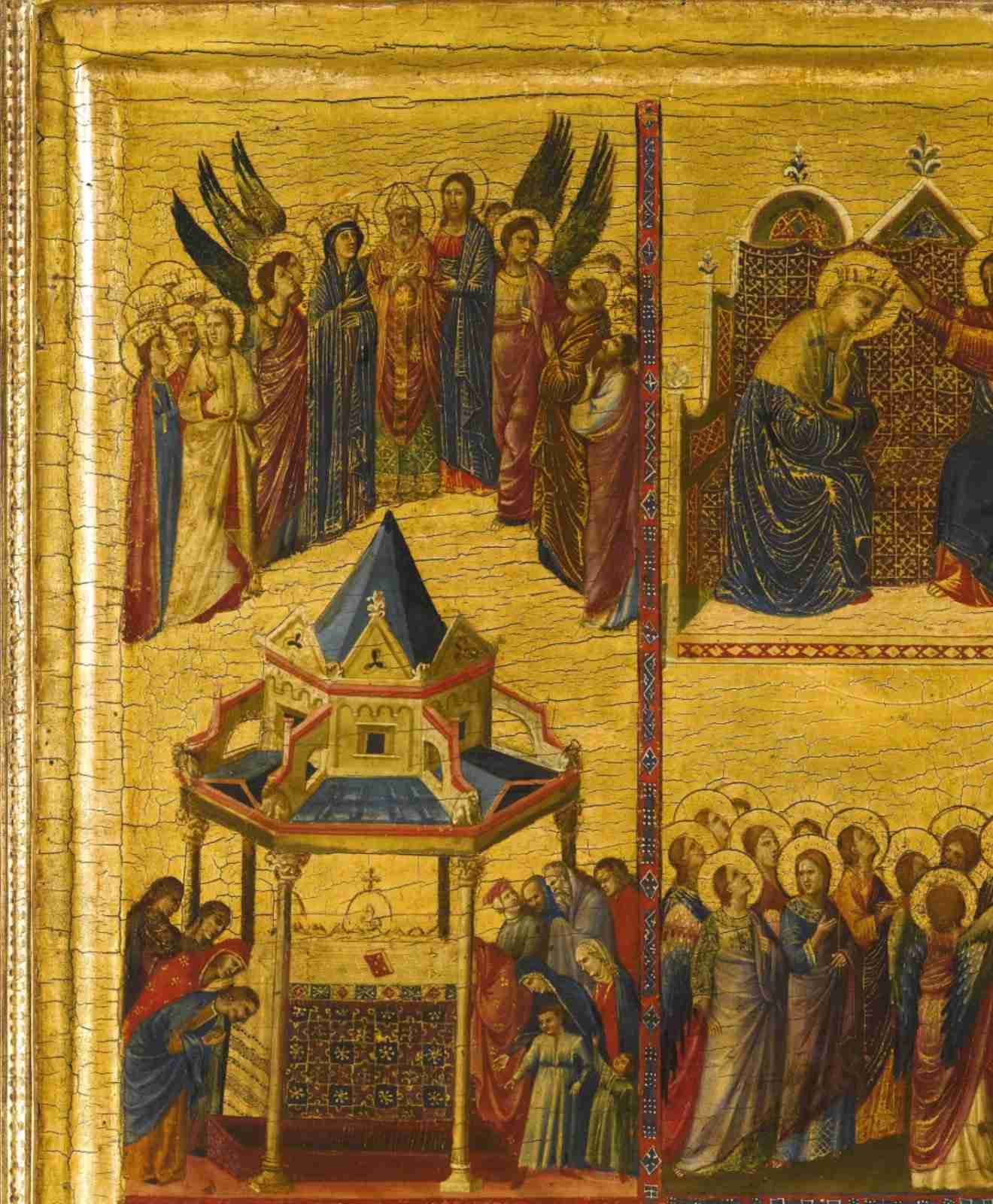 - A leaf of a diptych depicting episodes from the lives of the Virgin Mary and other saints, Panel, painted in tempera on gold ground, Panel, painted in tempera on gold ground, circa 1300-05. Galleria Nazionale d’Arte Antica, Rome.