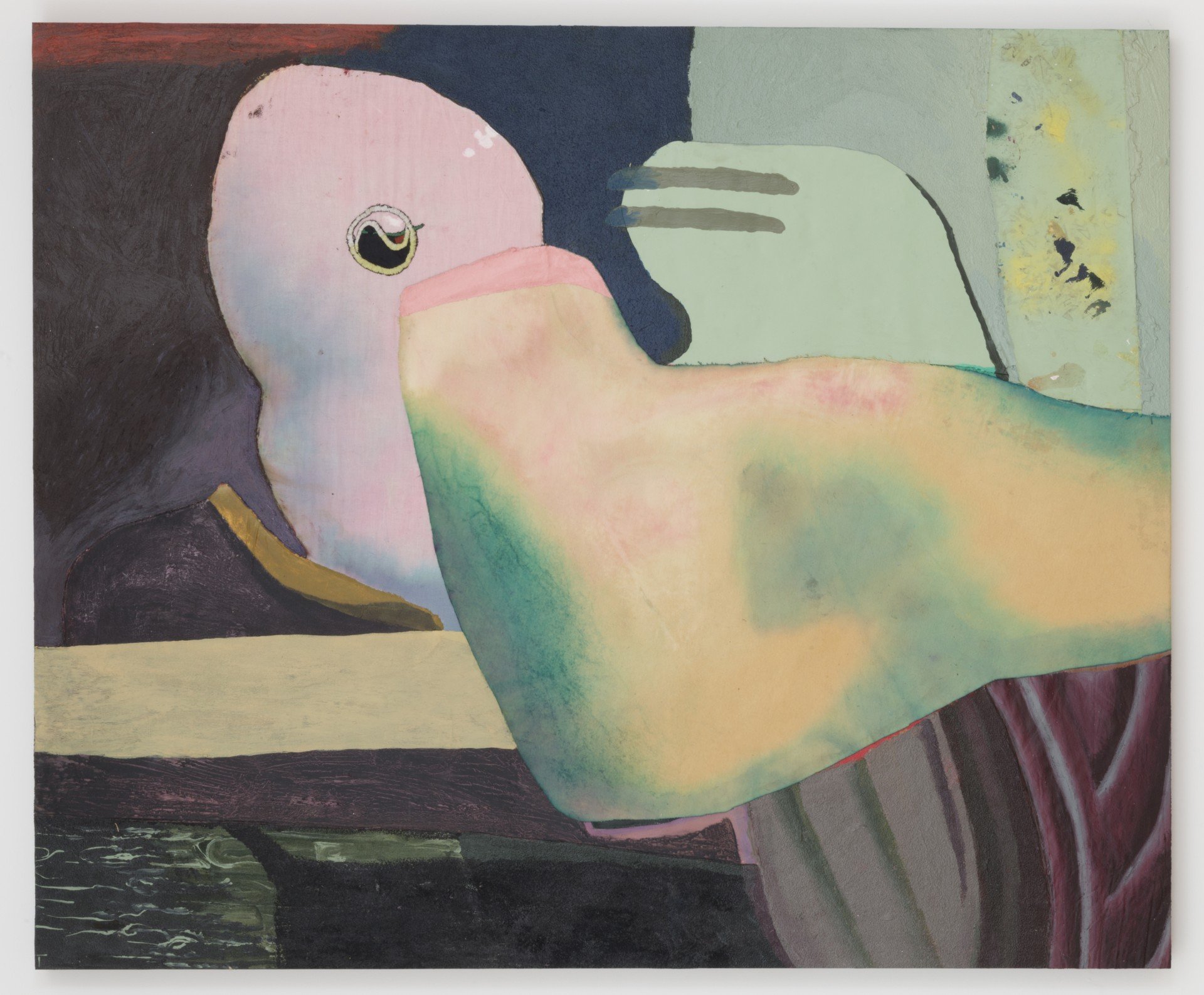 - Odessa Straub, Deep Off, Sneaky Peeker, 2014; acrylic, oil and fabric , 119.4 x 143.5 cm.