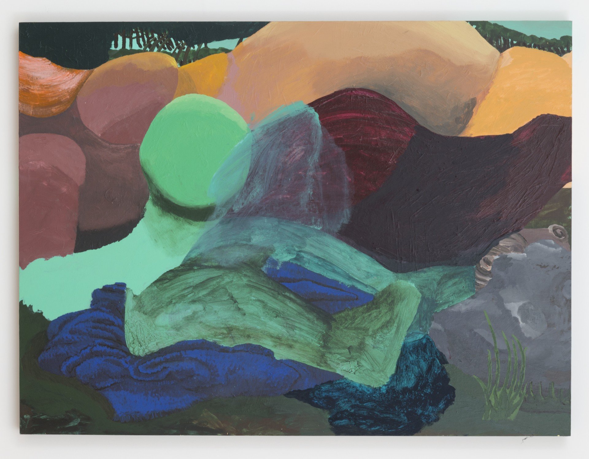 - Odessa Straub, Foot Smacking Puddle Sound, 2014; acrylic on panel, 91.4 x 121.9 cm.