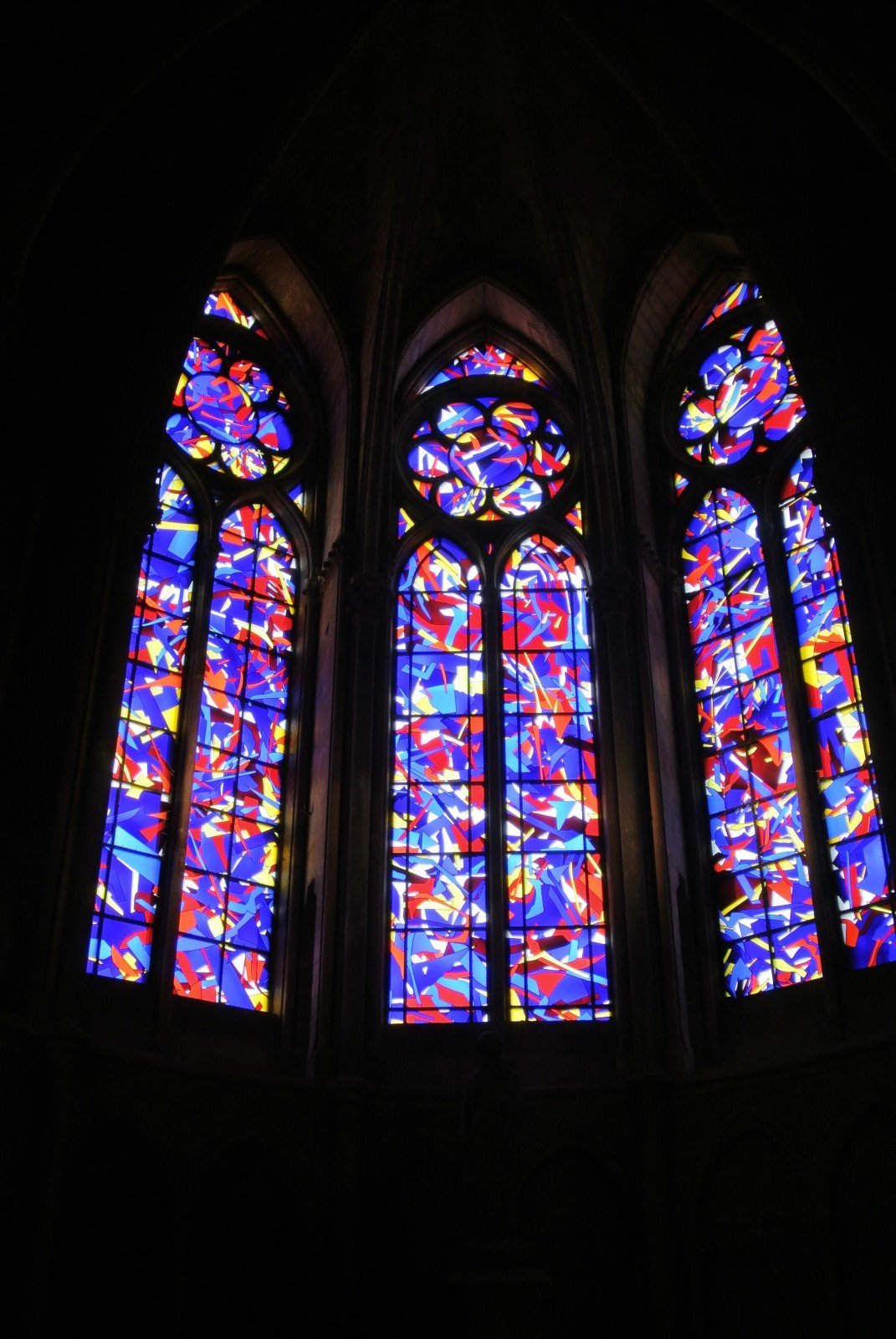 In 2008 German artist Imi Knoebel designed the six stained glass windows of the two north and south chapel of the apse of Notre-Dame de Reims cathedral. The windows were made in the workshop of maister glaziers Simon Marq in Reims and Duchemin in Paris using traditional lead techniques. The new windows have been inaugurated in 2011 during the celebration of the cathedral’s 800th anniversary and are a pure abstraction based on the colours of the original windows.