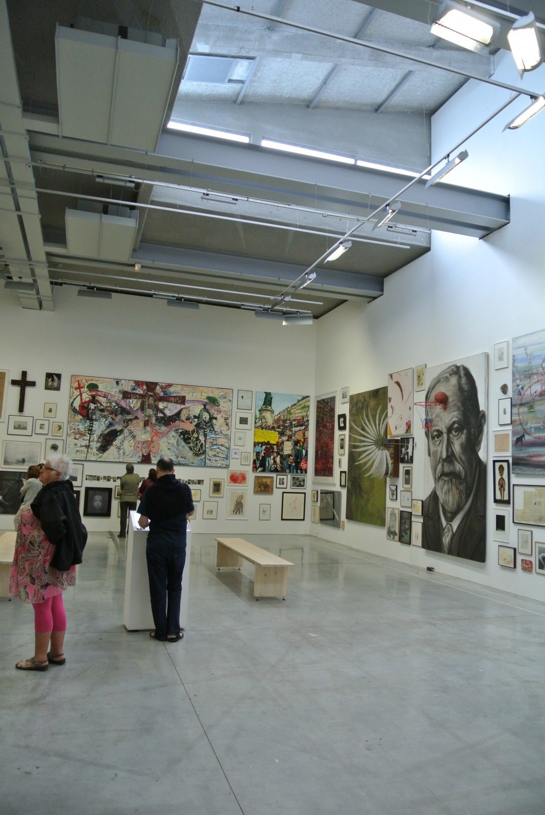 We are not the public, however our response as single visitors to the software ordered and provocative display of so many artworks, nearly 1200, has been quite negative. Instead of being encouraged to read each single work and grasp its own subjectivity we were overwhelmed by the whole. The “visual collision” between the artworks immediately turns out to be fortuitous, therefore scarcely interesting. Furthermore, the absence of any caption beside the artworks is like an invitation to remain on their surface. Of course captions would be visually disturbing, but the touchscreens available in front of each section in which the long “wall” carrying the pieces is divided seem to be a weak solution to the problem. It reduces each of those artworks, warmly described by the collector as reminders of “a story, a moment, an encounter”, to silent items. It follows that you just end up attempting to recognize what you already know, forgetting about the rest.