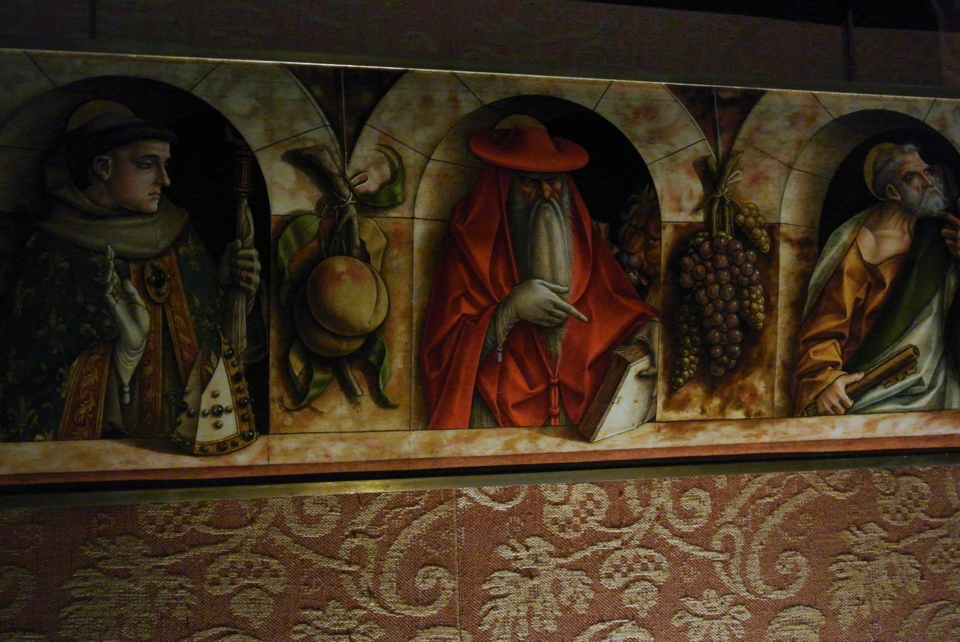 - Carlo Crivelli, Saint Louis, Saint Jerome and Saint Peter, 1493. Detail.
