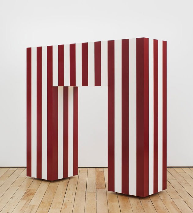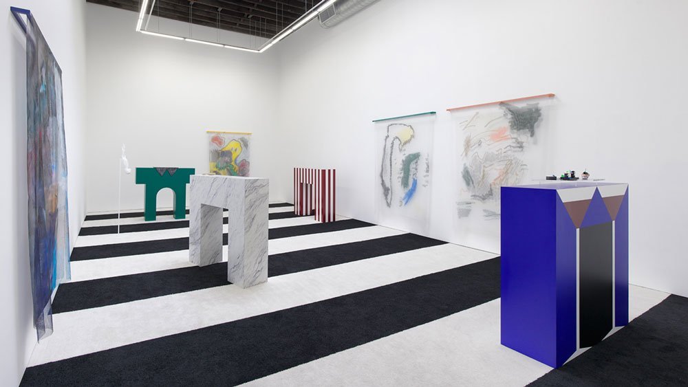 There are still a couple of weeks left to visit Strauss Burque-LaFrance‘s first solo show at Rachel Uffner Gallery in New York, No Aloha, and to see for real his Memphis inspired three-dimensional geometrical objects that reject the soft transparency of his new series of paintings. The gallery’s introductory text suggests that the “sculptures” may recall fireplace mantels, or pedestals. We would like to add that they could also address to triumphal arches or indeed advanced versions of them as Le Grande Arche at La Défense district in Paris is to be considered.
