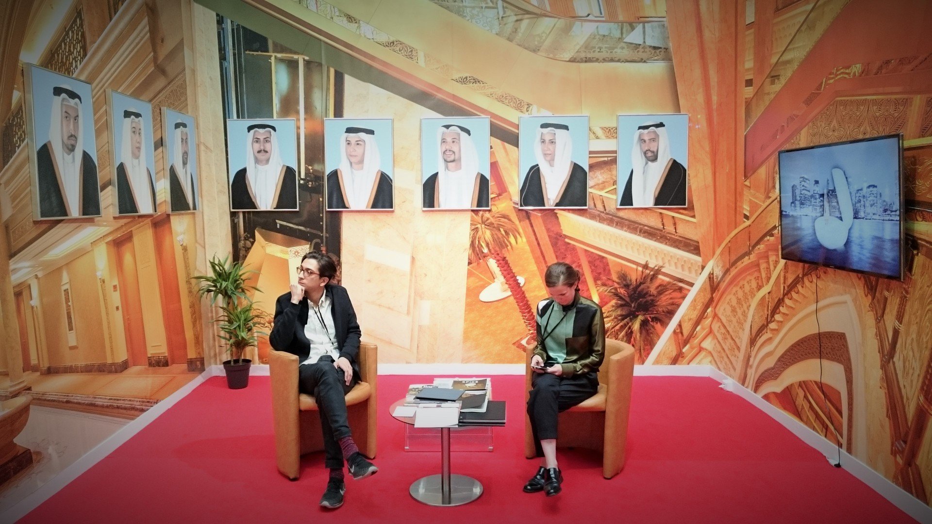 A digital print of the interior of a luxury hotel in the Gulf covered the inside of the booth, on which there were hanging eight oil portraits, ironically depicting the GCC’s members, executed by a Thai painter specialised in sheikh portraiture. From an artistic point of view however, what was really engaging was the fact that the gallerist and her assistant ended up to be involuntary guests sitting in the lobby of this multi-billion-dollar hotel. In a similar, yet different way this scene reminded to the perfect set-up created by Helly Nahmad Gallery that has so impressed visitors, and media, at Frieze Master the week before.