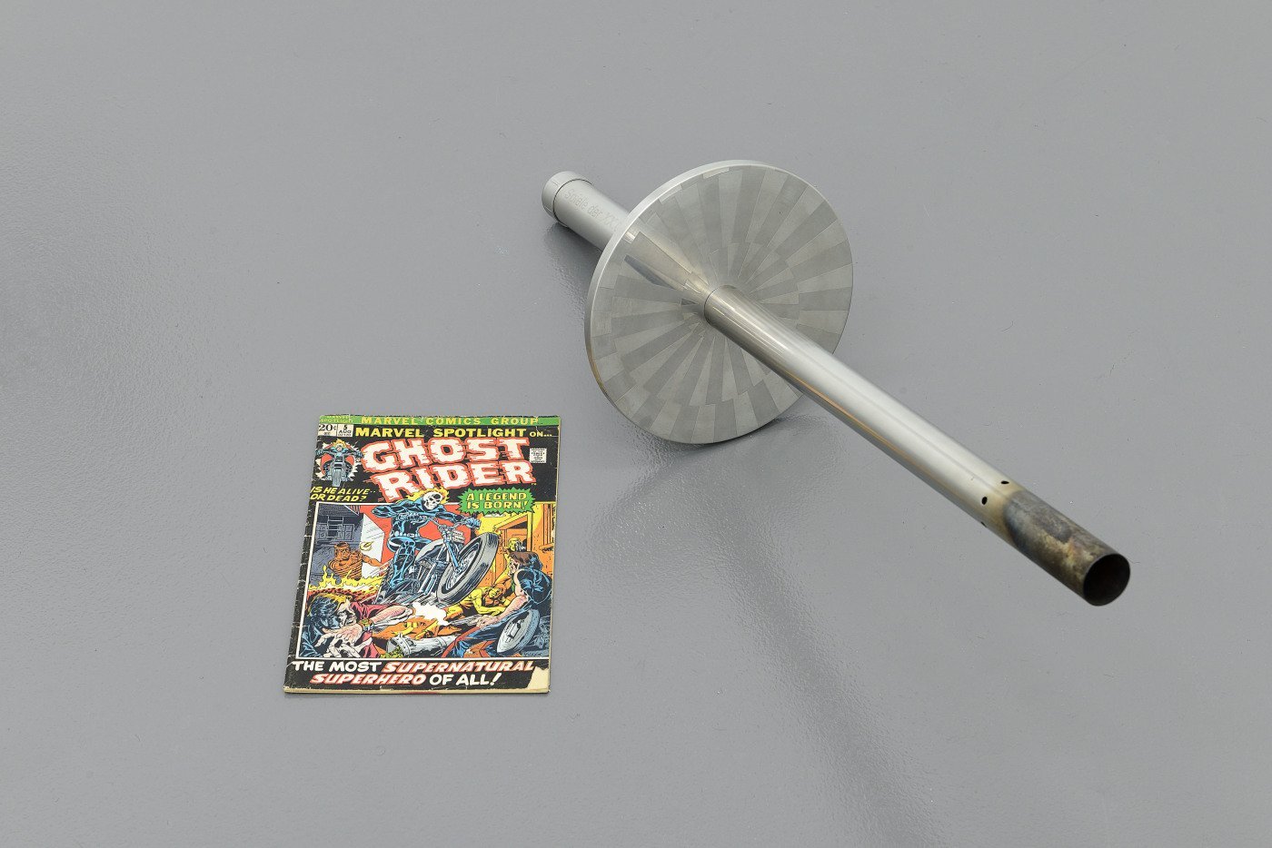 - Nick Darmstaedter, Commuting All Death Sentences to Life in Prison, 2014, 1972 Olympic torch and Ghost Rider comic book.