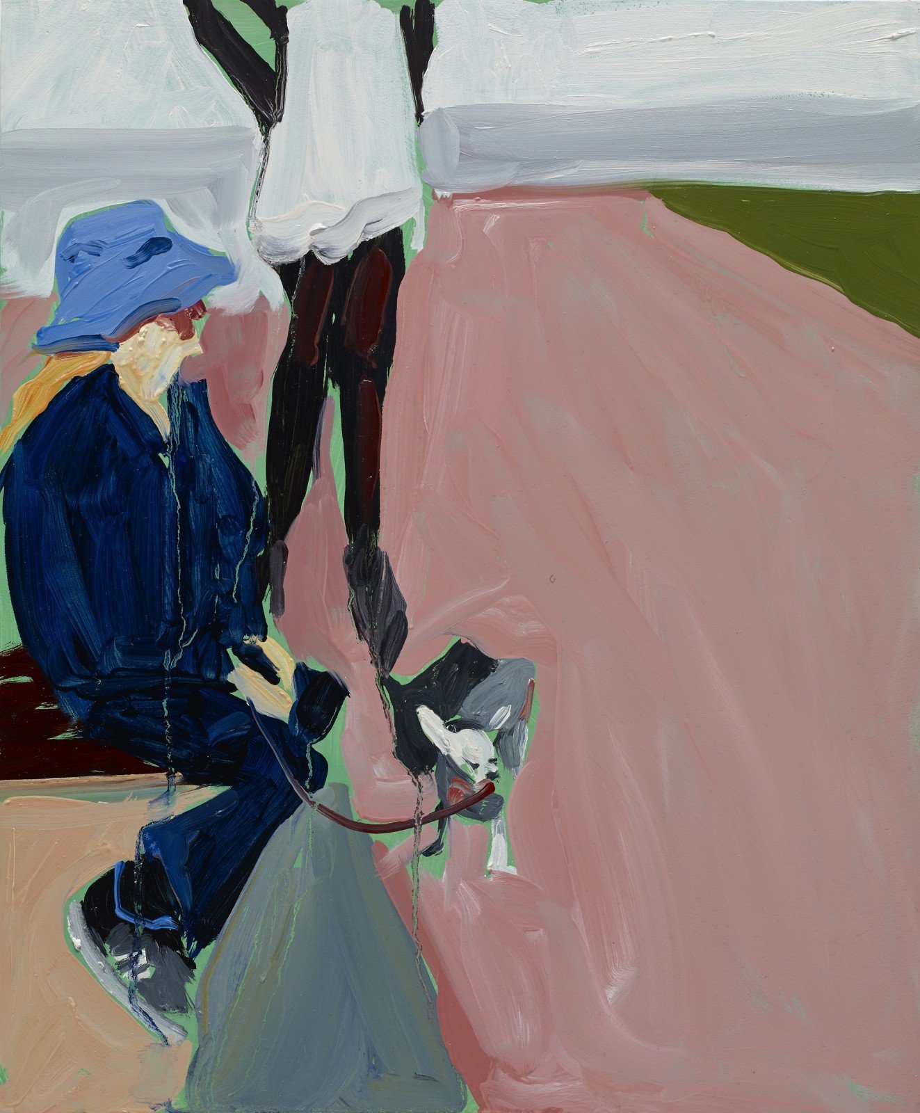 The people are painted. The paint is peopled. These two aspects of the work are interchangeable. Unique characters inhabit a leisure space that is both public and private. The beach environment can be familial, communal or utterly personal. The seafront is a stage set for one, two or more actors to improvise their routines. Contradictorily, in a crowd one can be solitary.