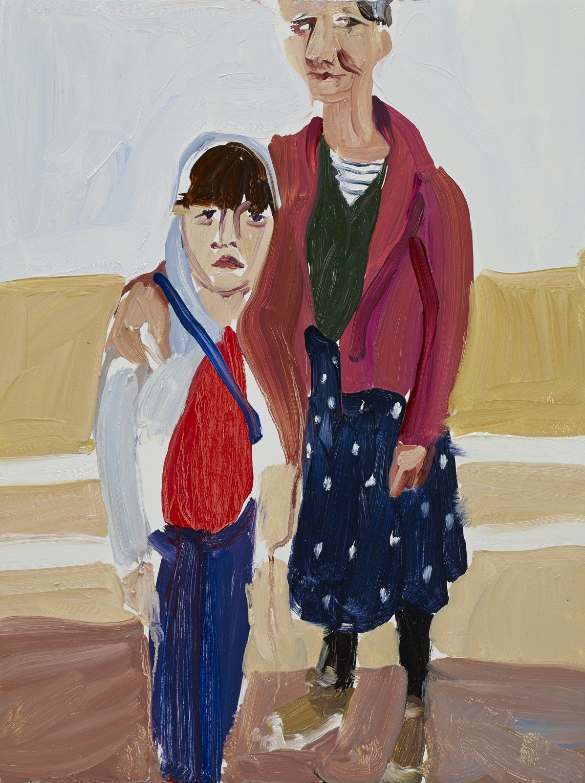 Nothing is hidden: in paint or person. Much is simplified. Limbs might appear awkward – because limbs, especially children’s, often are. Looking at these paintings we will often engage with the eyes, but the hands occupy our attention too. There is an ‘inwardness’ about the gaze of her subjects. This is subjectivity that we might only guess at, because sometimes we must mind our own business.