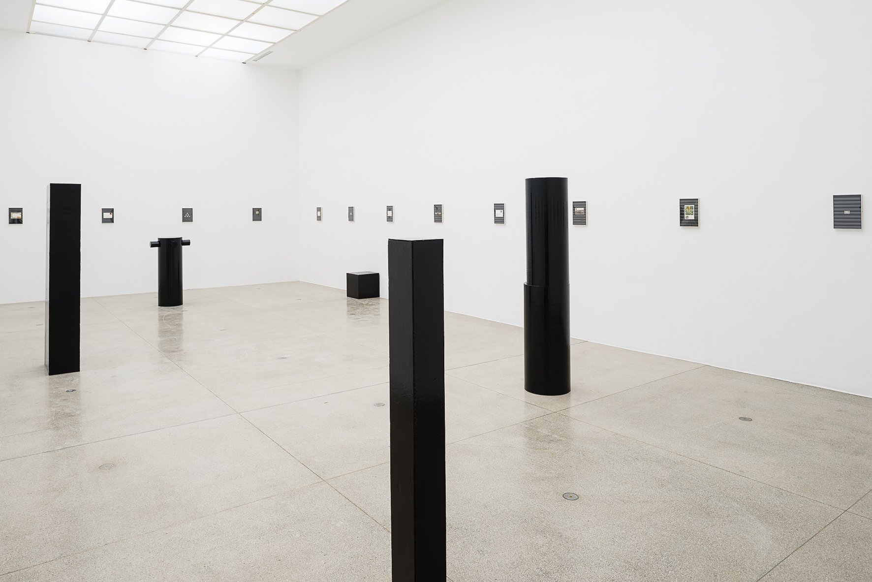In the main space Justin Matherly’s work seems affected by Rondinone’s sculptural techniques. The New York based artist presents a series of large sculptures made of cast concrete, sitting on crutch-like objects, and symbolizing the ambivalent dipole of weakness and power. His sculptures are surrounded by Bob Law’s monumental works of British Minimal Art. The work mister paranoia IV 20.11.1970 (no. 95) is one of the highlights of the show, a blank canvas featuring a black outline as the only information, finished with a date, proving the significance of modesty in abstract painting, and how rare is this feeling today, despite the abundance of abstract painting in art.