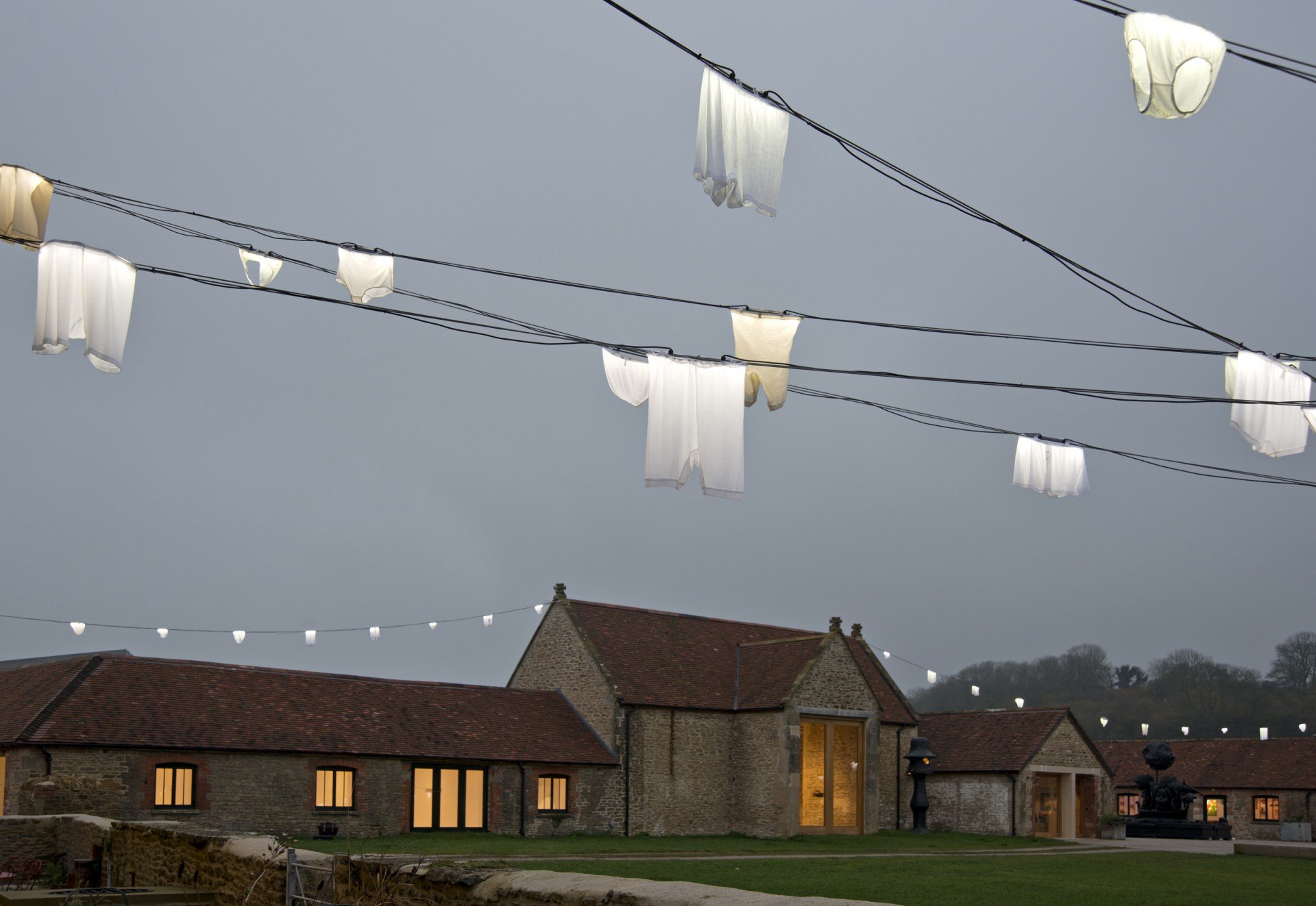 Returning to Hauser & Wirth Somerset for a second time (our first visit was reported on CFA six months ago) the main attractions were the Pipilotti Rist video installations, including the humorous, ‘Hiplights’ (2011), consisting of underwear strung between each of the buildings around the farmyard, previously seen at the Hayward Gallery in London in 2011.