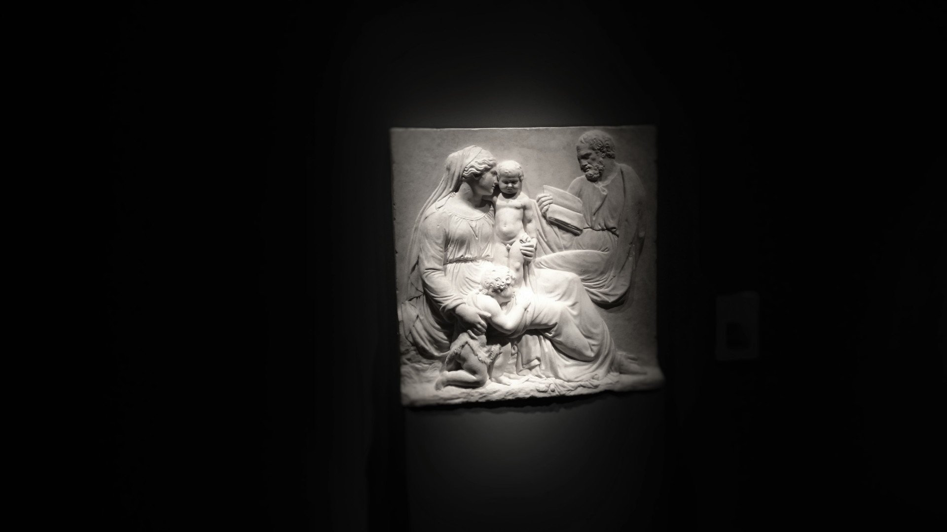 - Lorenzo di Guglielmo del Buono called Lorenzetto, Madonna and child with the young Saint John the Baptist and Saint Joseph, relief in marble, 54,5 x 56 cm. At Moretti Fine Arts.
