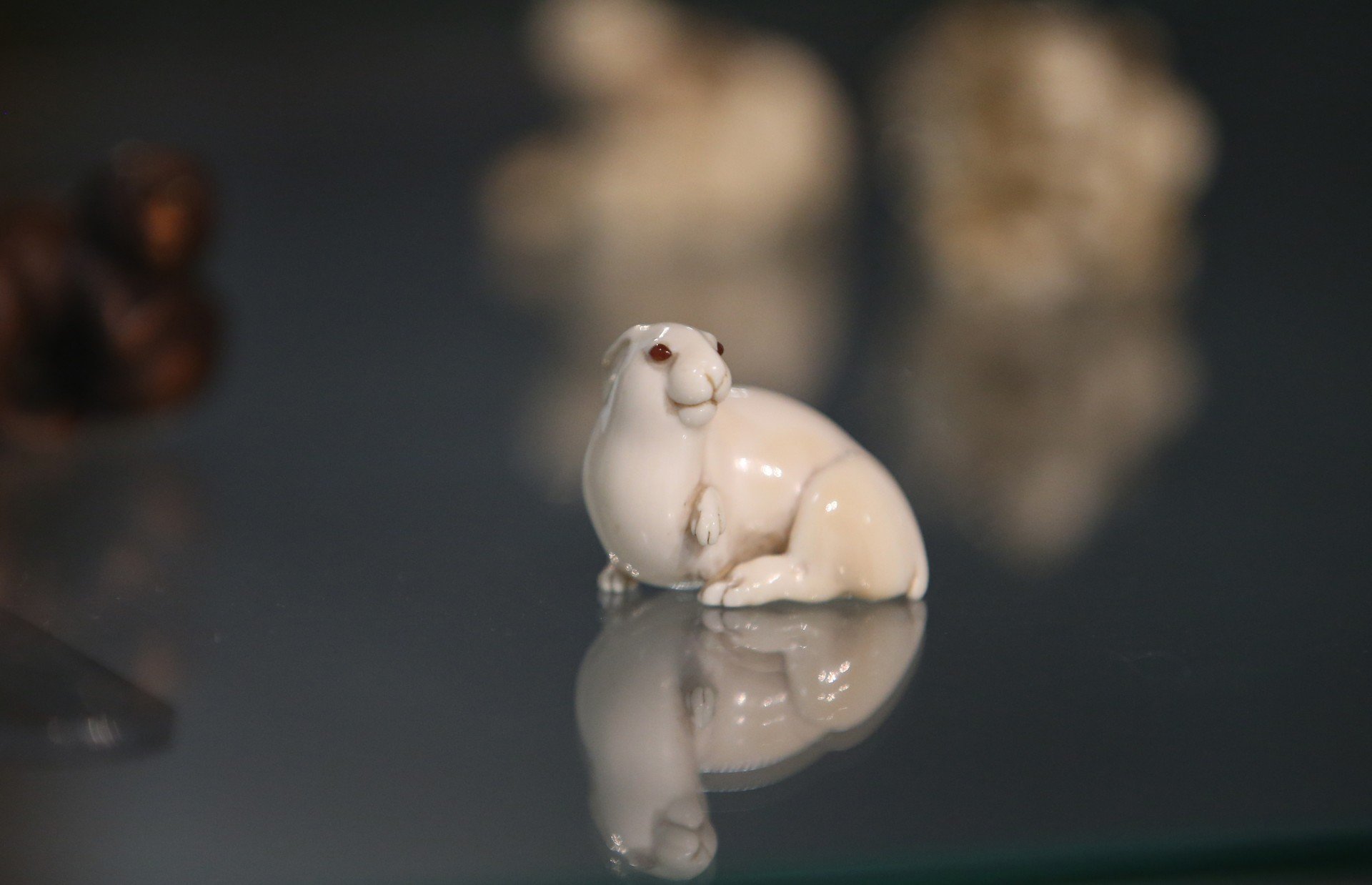 - Edmund de Waals, Hare with Amber Eyes netsuke. Magnificent Obsessions: The-Artist as Collector, Barbican Art Gallery. ©Peter MacDiarmid, Getty Images.