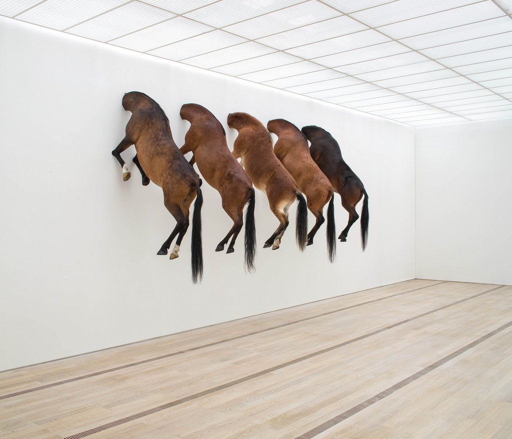 - Maurizio Cattelan, edition of 3 plus 2 artist’s proofs of “Untitled”, 2007; Taxidermied Horses. as exhibited at the Fondation Beyeler, Switzerland, in 2033.