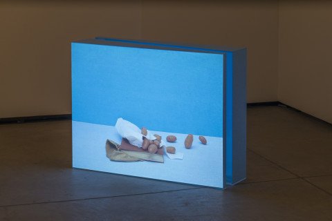 - Rodrigo Cass, Material Abstrahere, 2014. Video projection on linen, audio 70 x 93 x 20 cm (each) Edition of 5. Photo: Eduardo Ortega / Courtesy Galeria Fortes Vilaça.