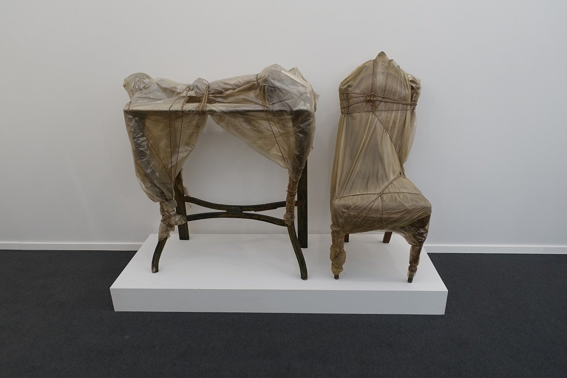 The remarkable works by Christo at Annely Juda are a second good example of this approach: “Wrapped table and wrapped chair” from 1963, a touching “Packed supermarket cart”, also from 1963, and a fat “Package” from 1962. These are the highlights from a selection of pieces covering the crucial period in the artist’s career that goes from 1958 to 1972, when he wrapped the Reichstag in West Berlin. Also in this case art institutions are welcomed to step in.