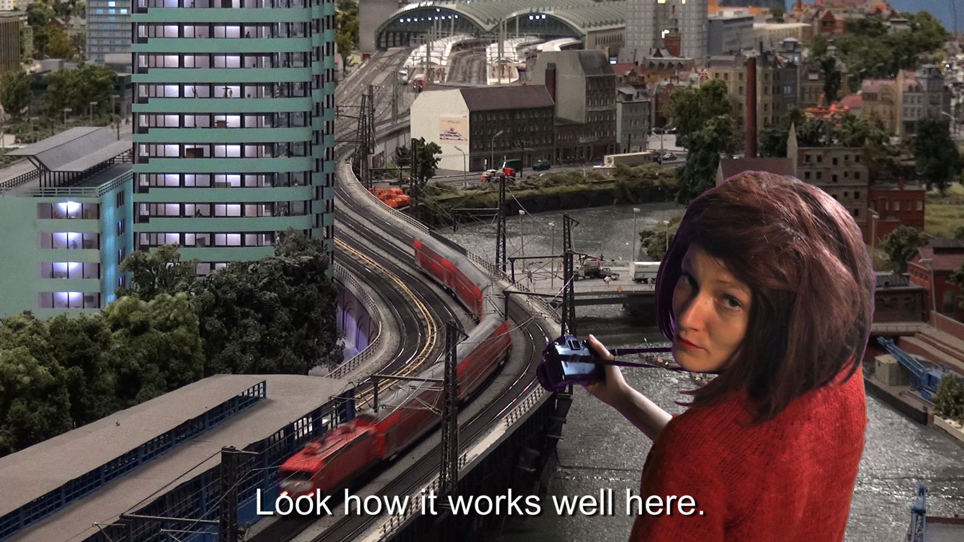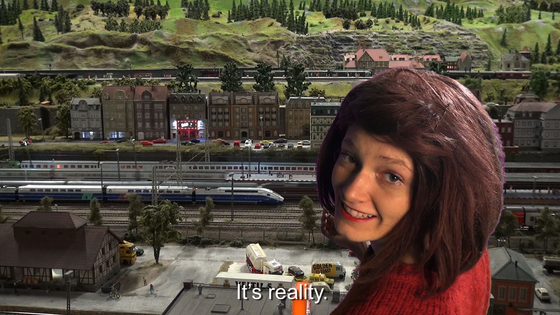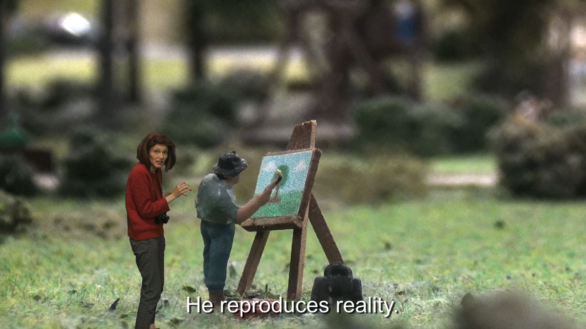 A similar static miniature world we see in Mon Amie La Rose returns in a second video titled La Vraie Vie, where Clara Thomine breaks the fourth wall of theatrical conventions and looks straight at the spectatorthis time the fleshy one in the gallery. Giving a parodical and hyper-subjective lesson on life and art, she explores what she herself experiences in an apparently unaffected and artificial world.