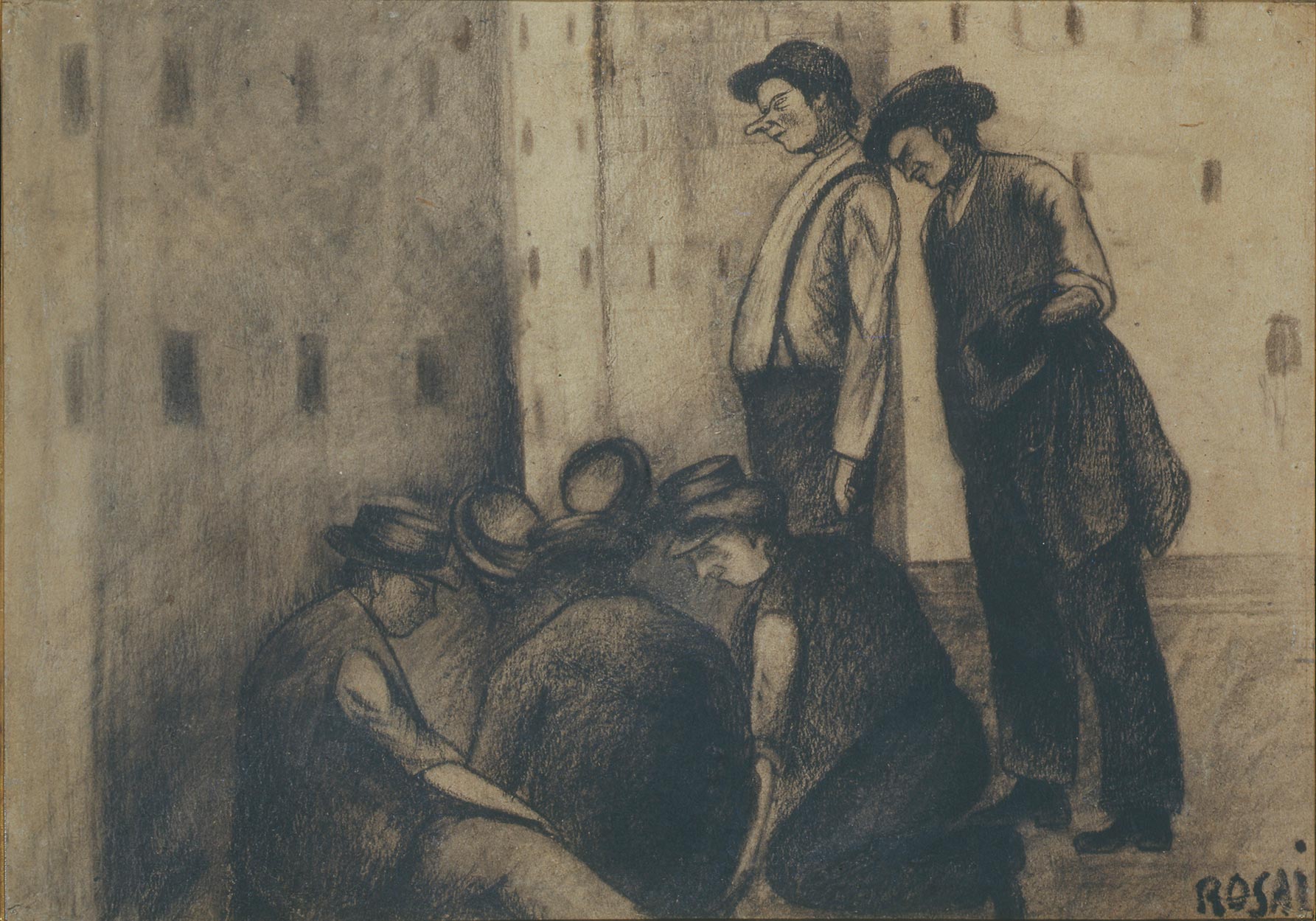 - Ottone Rosai, Giocatori di toppa, 1920, charcoal on cardboard, cm 49 × 69.